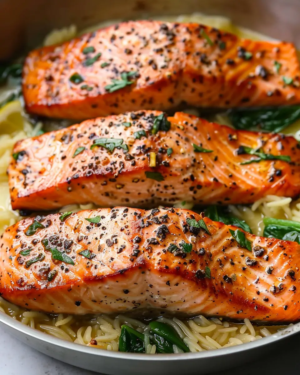 Feel free to get creative with the lemon orzo that pairs beautifully with your salmon. Want to add a little crunch? Toss in some lightly toasted pine nuts or chopped herbs like parsley or dill. You can also mix in seasonal vegetables—caramelized asparagus or sautéed spinach work wonderfully! Not a fan of orzo? Swap it out for quinoa or wild rice for a different texture and nutritional profile. Check out various orzo recipes to spark your imagination!