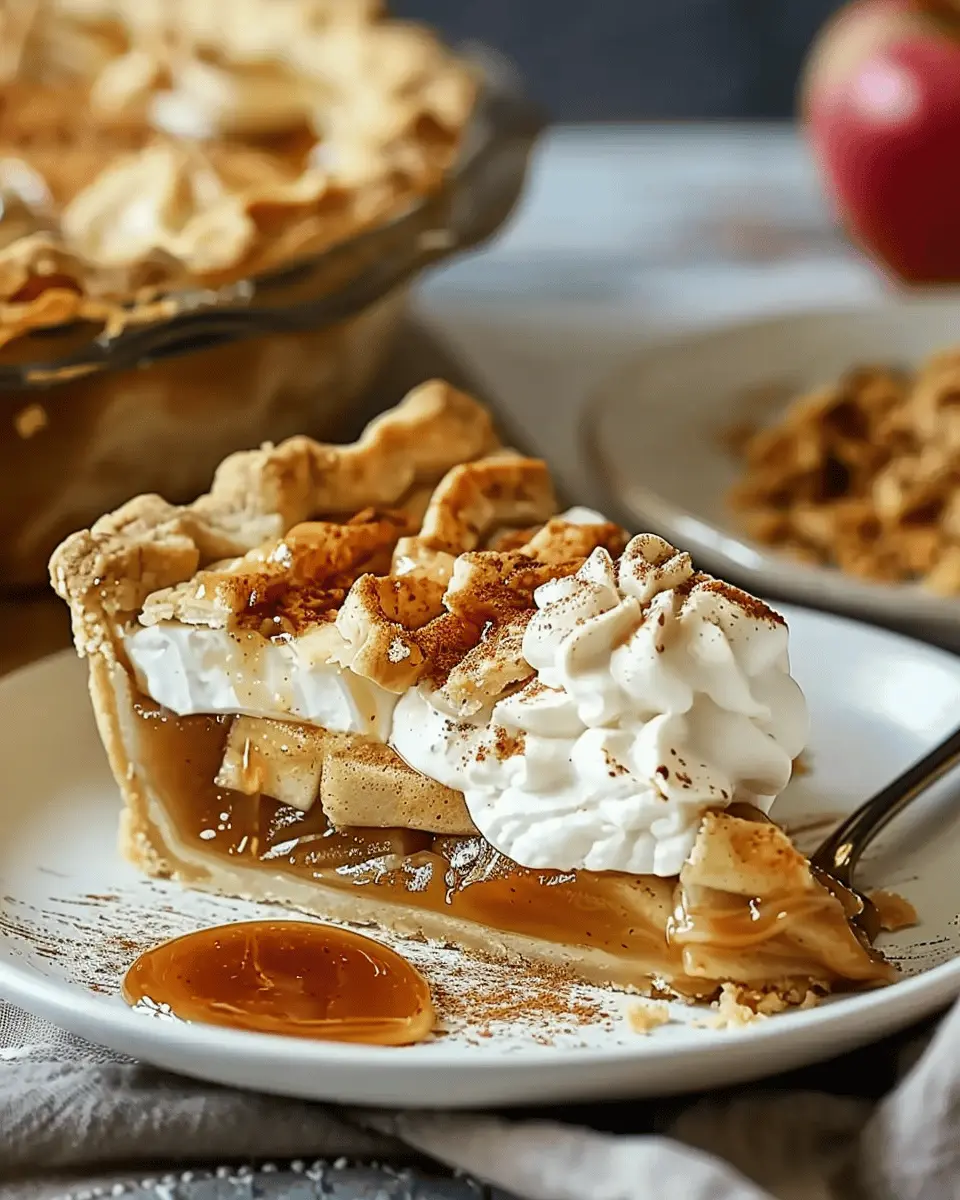After baking, let your pie cool at room temperature for at least an hour. This gives the filling a chance to set properly. Once cooled, slice it up and serve with your homemade cinnamon whipped cream.