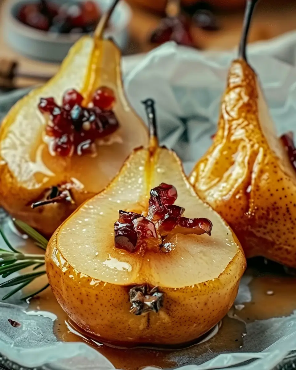 No baked pears would be complete without a drizzle of honey and a handful of cranberries. The honey enhances the natural sweetness, while the cranberries bring a tartness that balances the dish beautifully. For an extra crunch, you could even add some chopped nuts on top. This medley of flavors and textures will have your taste buds dancing! If you’re interested in the health benefits of honey, you might want to explore this resource from Healthline.