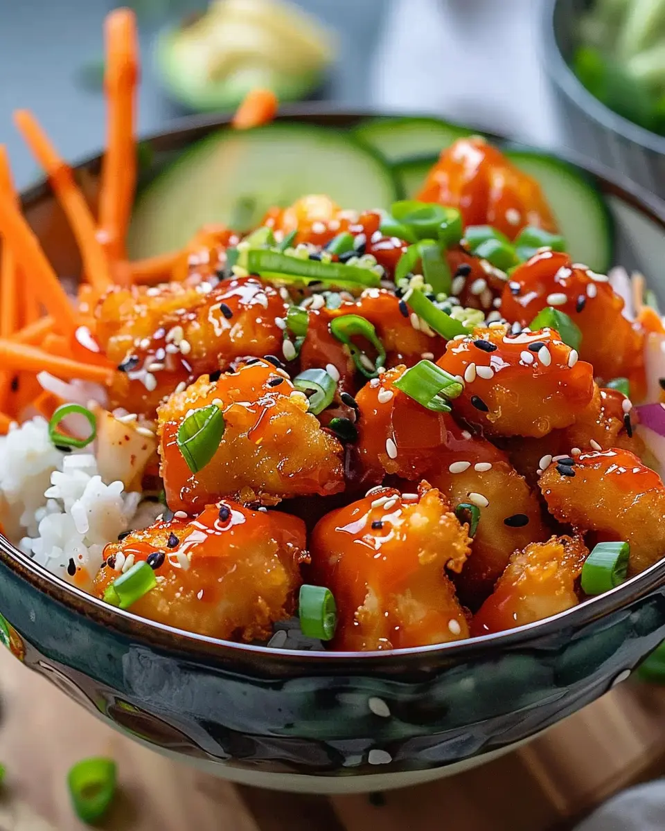 PrintBang Bang Chicken Bowl: Easy Recipe with Turkey Bacon Twist