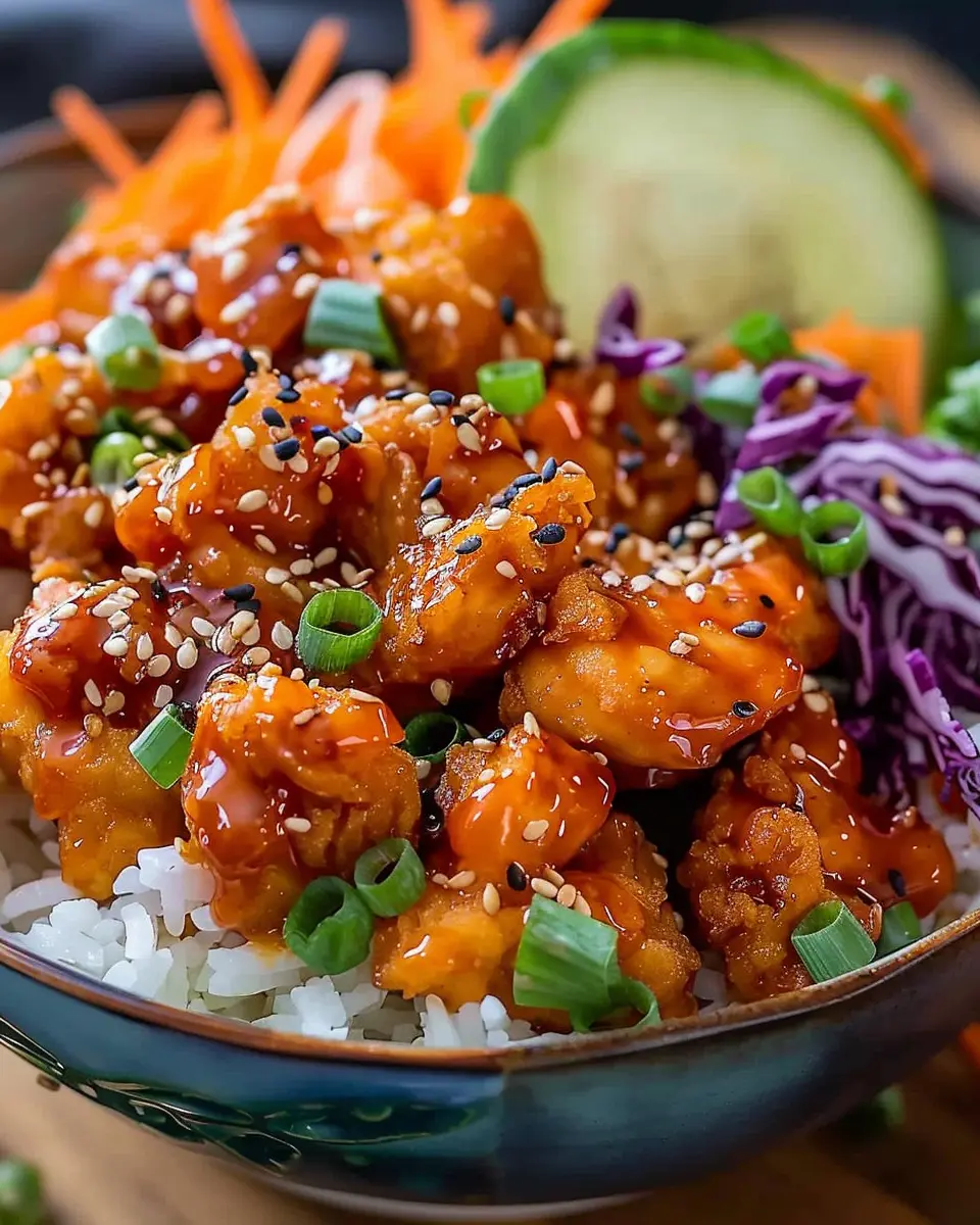 If you want to turn up the wow factor, consider adding pickled vegetables for a tangy contrast. Your Bang Bang Chicken Bowl is ready, and it looks as good as it tastes!