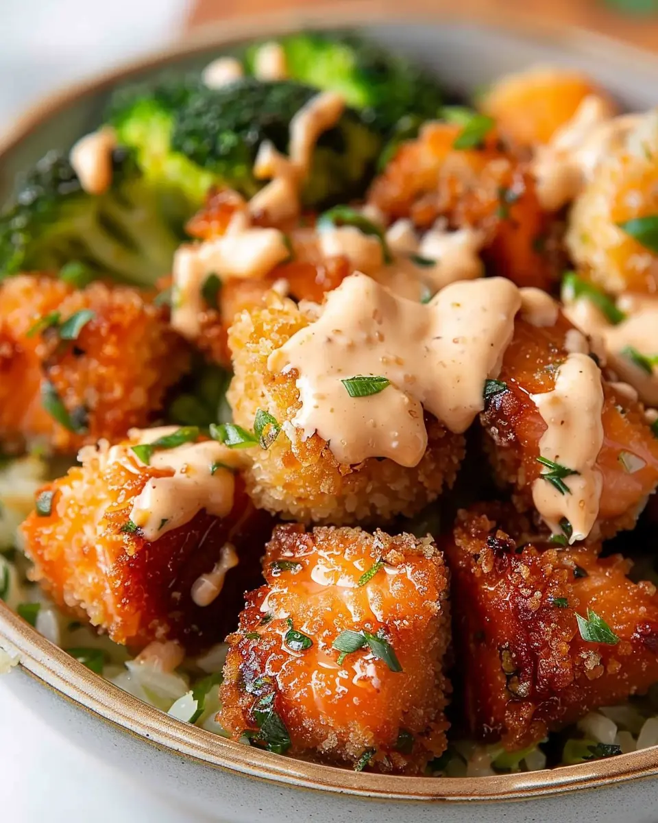 Achieving that perfectly crispy exterior is key for your Bang Bang Salmon Bites. Make sure to pat the salmon dry before seasoning. This helps the coating stick better and ensures you get that delightful crunch. Consider using panko breadcrumbs for an extra-crispy bite—these Japanese-style breadcrumbs are a game changer.