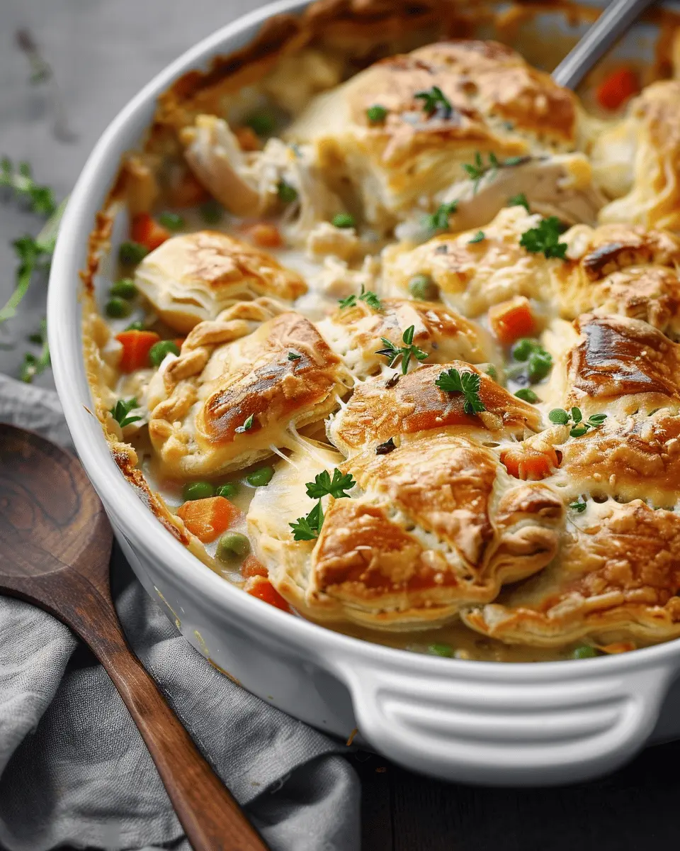 No skillet? No problem! You can easily adapt your Chicken Pot Pie Casserole by using an oven-safe pot or a casserole dish. Just layer your ingredients directly in the dish and bake. Alternatively, try using a slow cooker for a hands-off method. Just combine your filling ingredients and allow them to cook on low for 6-8 hours—a great way to infuse flavor.