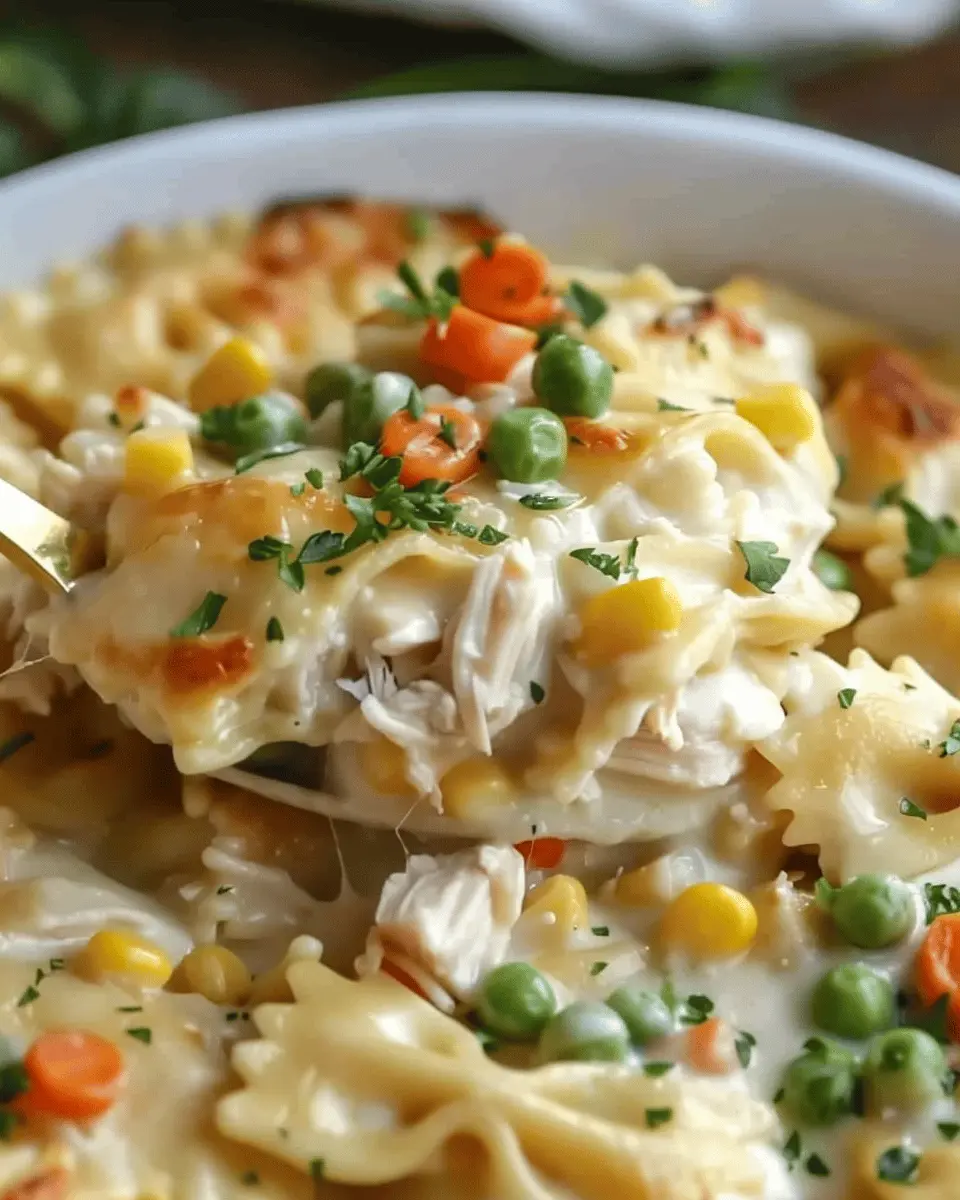 In summary, the Chicken Pot Pie Pasta Recipe combines the comforting flavors of a classic chicken pot pie with the convenience of pasta, making it perfect for busy weeknights. This dish features tender chicken, creamy sauce, and delightful veggies, all harmoniously brought together. If you haven’t tried it yet, I encourage you to give this recipe a shot! Not only is it a delicious way to impress your friends and family, but it’s also a fun twist on a beloved classic.