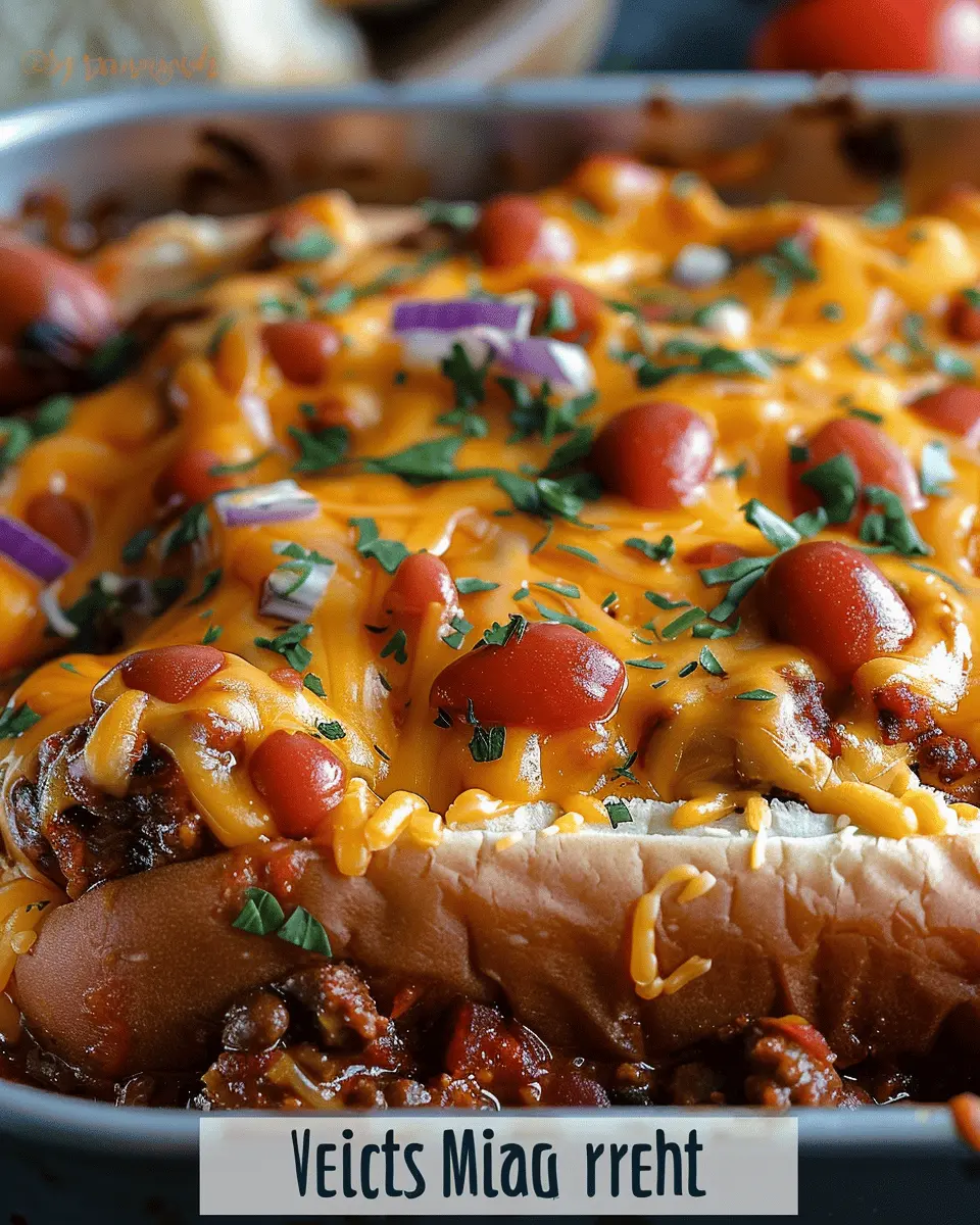 A deliciously indulgent recipe for a Chili Cheese Dog Bake, perfect for comforting meals.