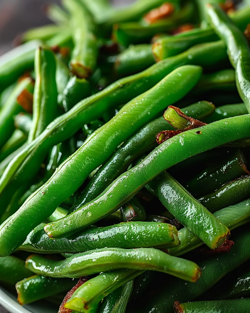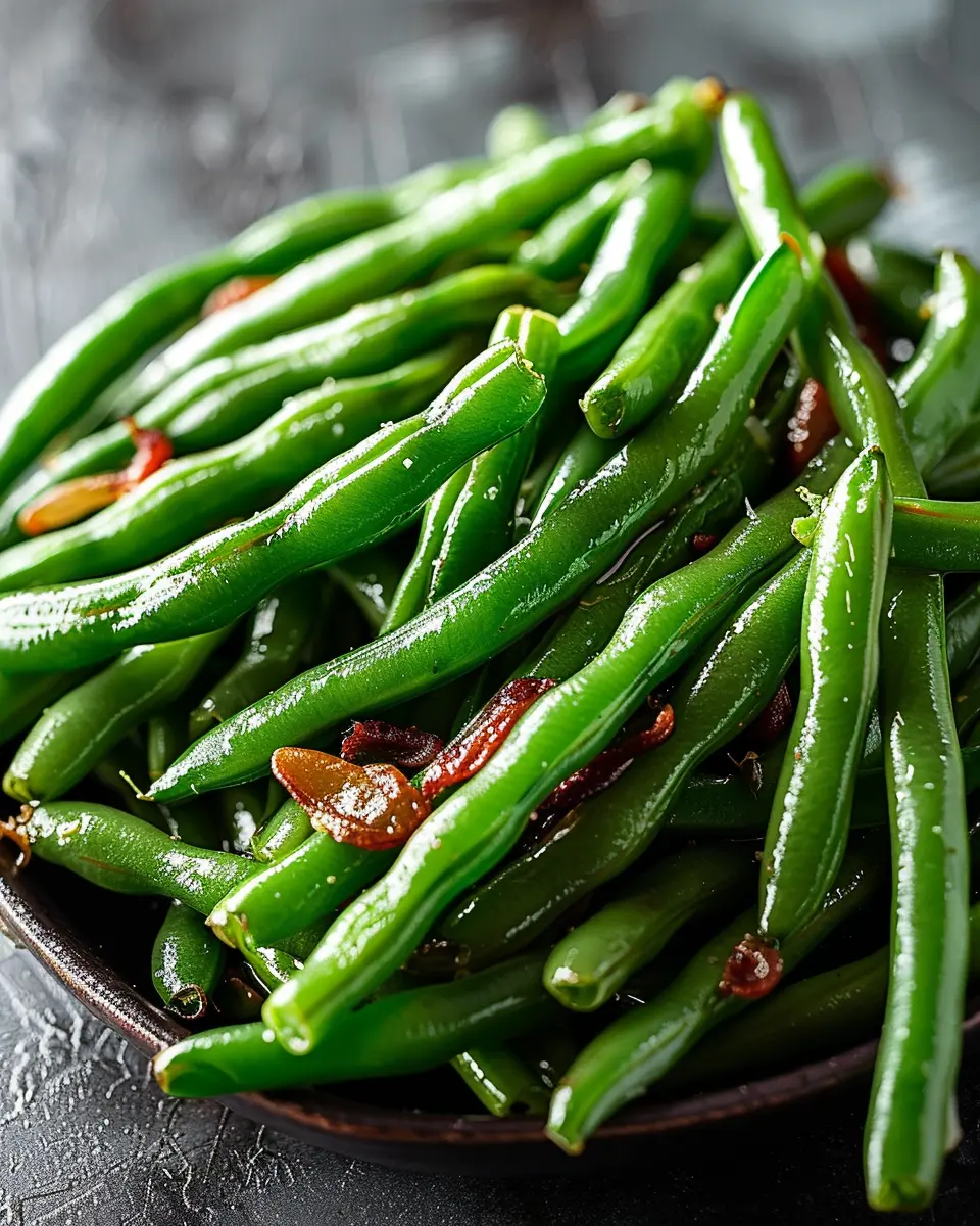 Deliciously crispy green beans tossed with turkey bacon for a flavorful side dish.