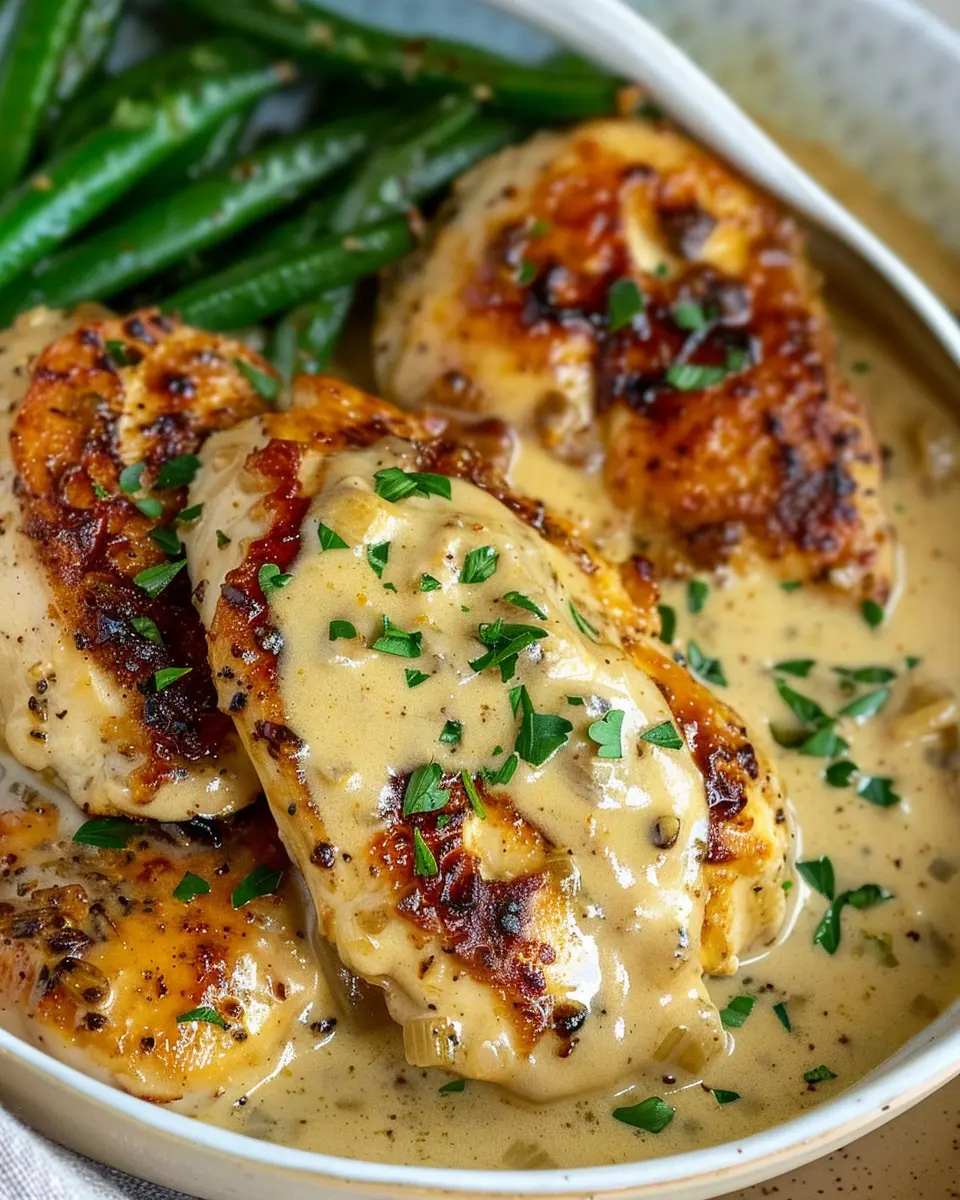 - Elegant Plating: Use large white plates to make the colors pop. Consider placing the chicken on a bed of creamy mashed potatoes, drizzling the sauce over both.