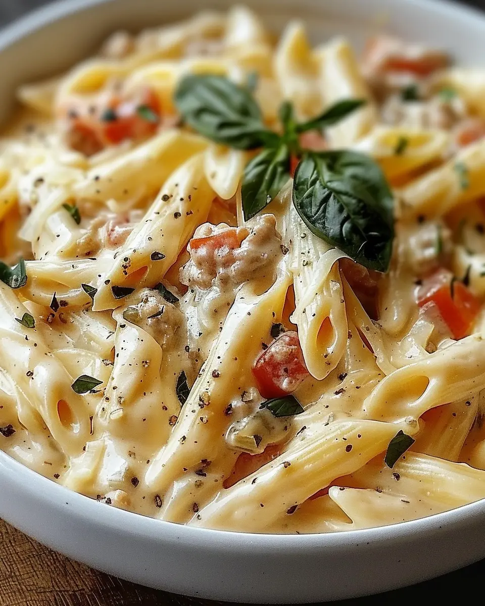 PrintCreamy Rotel Pasta with Turkey Bacon: Easy Comfort Food Delight