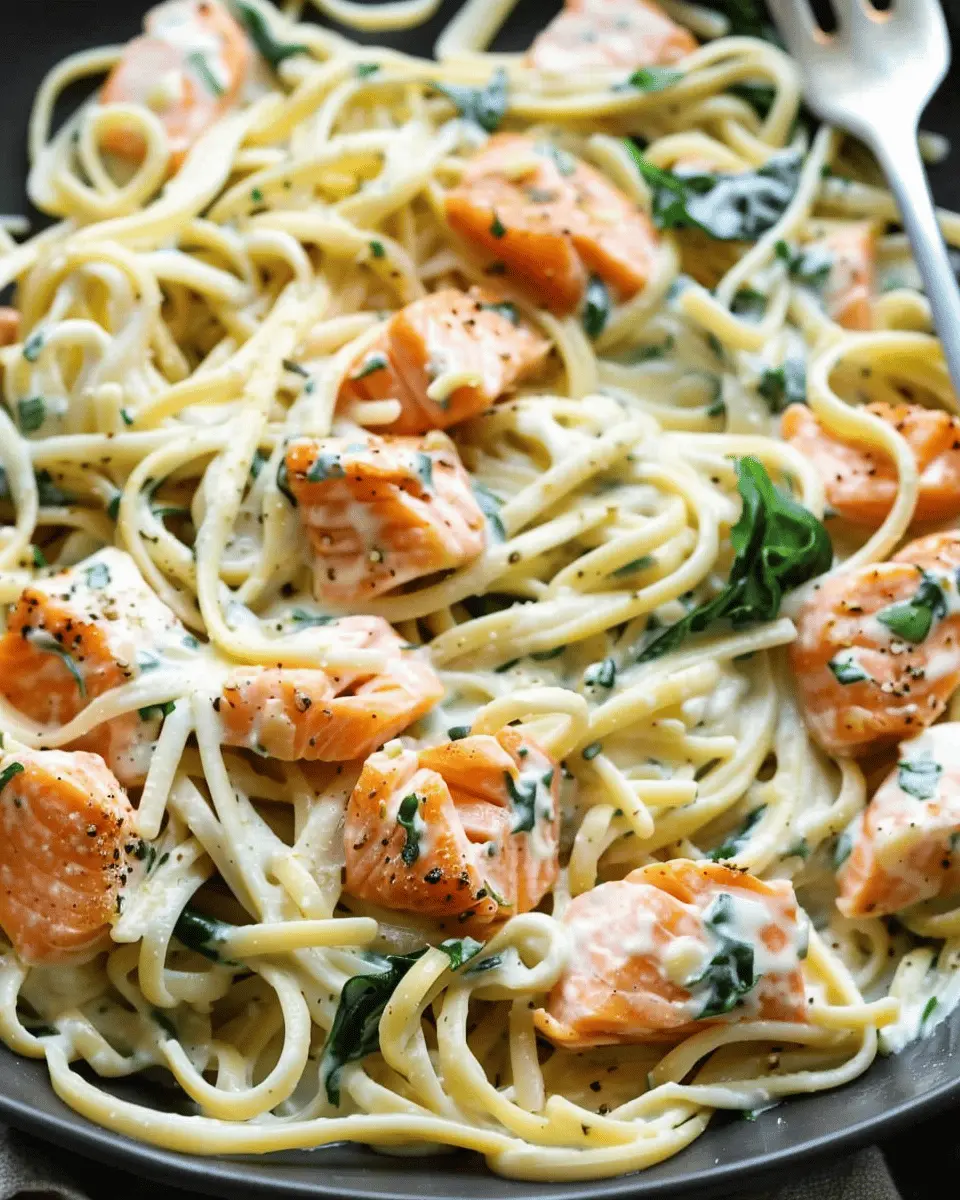 This creamy salmon pasta is a rich and flavorful dish that offers a perfect blend of indulgence and comfort, making it an ideal dinner choice.