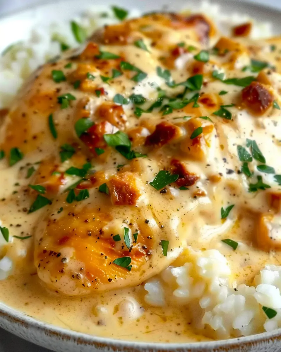 The combination of tender chicken, creamy sauce, and fluffy rice creates an irresistible dish that’s perfect for impressing friends or simply treating yourself. Enjoy your cooking adventure, and remember to savor each bite of your delicious creamy smothered chicken!