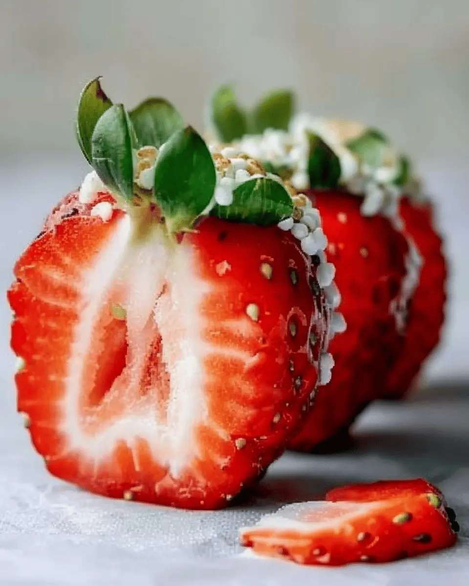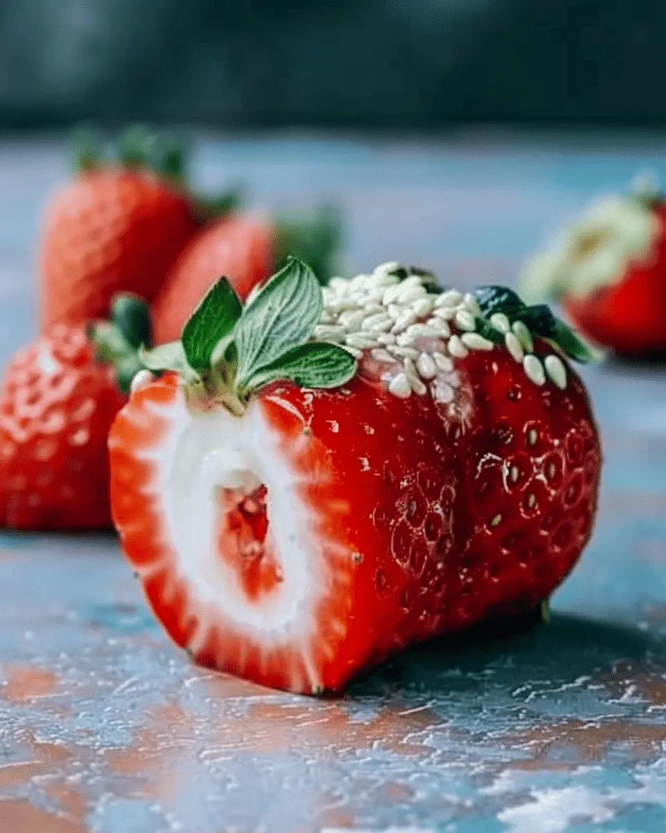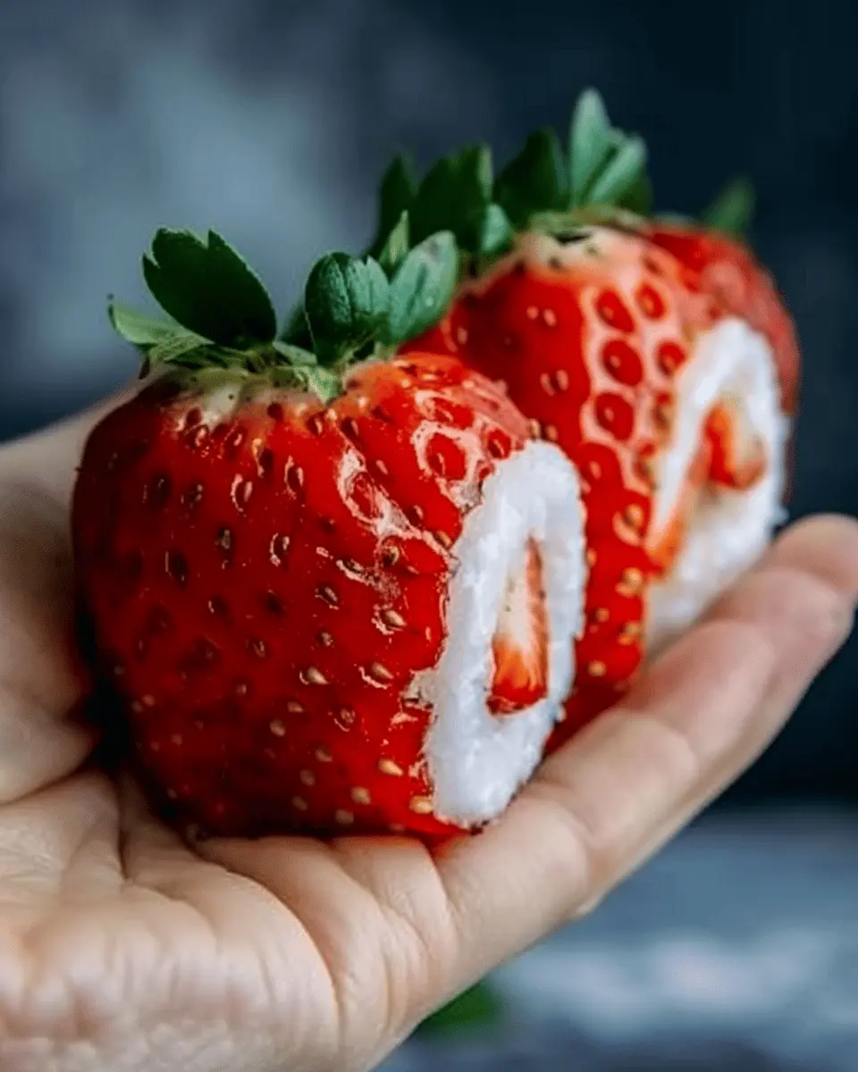 One word: Presentation. The vibrant colors of the fresh strawberries nestled within a fluffy filling and wrapped in a sweet rice-like layer create a feast for the eyes. Not only is it a visual treat, but it’s also a unique combination of flavors that marry the creamy nostalgia of strawberry shortcake with the innovative shape and style of sushi. People love trying dishes that not only taste great but look Instagram-worthy—perfect for a gathering or a special occasion.