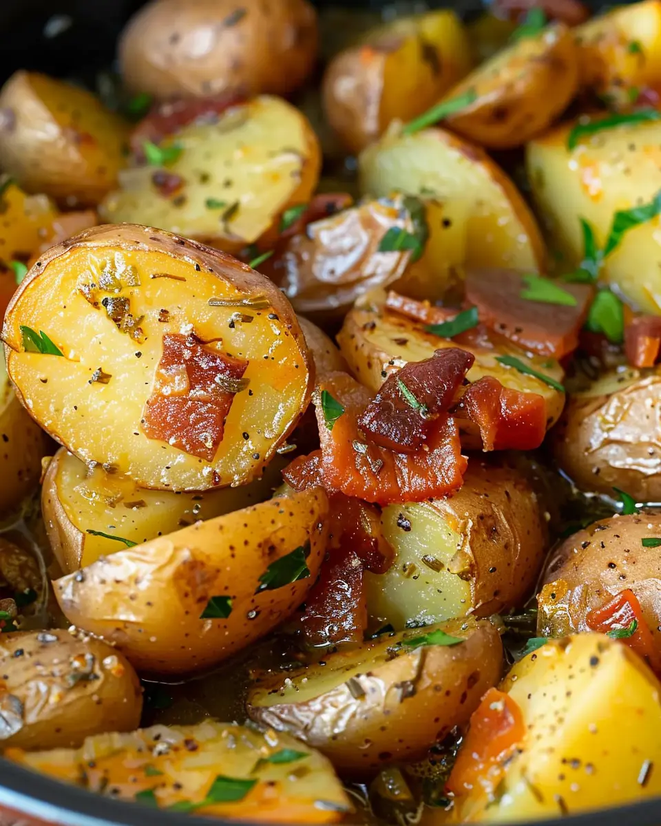 To achieve a depth of flavor, layer your ingredients thoughtfully. Place the Turkey Bacon and Chicken Ham at the bottom so they can infuse their flavors into the potatoes as they cook.
