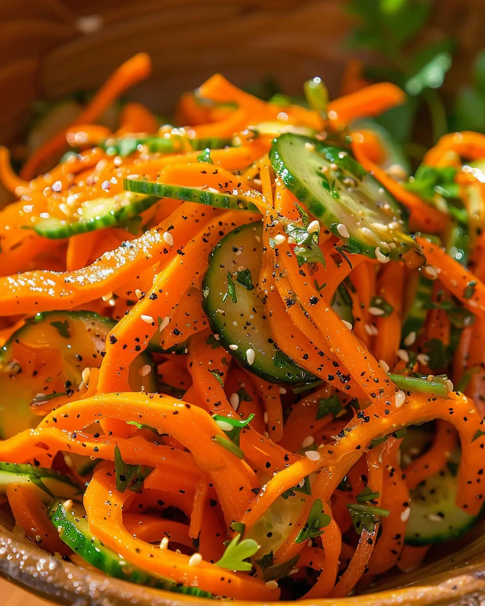 The cucumber carrot salad offers an abundance of benefits. Packed with vitamins and minerals, cucumbers are hydrating and low in calories, while carrots provide essential antioxidants and are great for eye health. Together, they create a colorful, crunchy dish that’s as nutritious as it is delicious.
