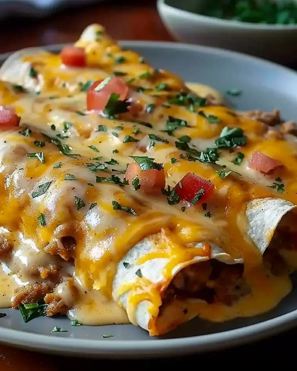With everything prepared, it’s time to assemble your delicious breakfast enchiladas. Take a warm tortilla and spoon about 2-3 tablespoons of the filling onto the center. Roll the tortilla tightly and place it seam-side down in a greased baking dish. Repeat with the remaining tortillas. Once all are in the dish, pour the sausage gravy generously over the top. Sprinkle with extra cheese because, why not?