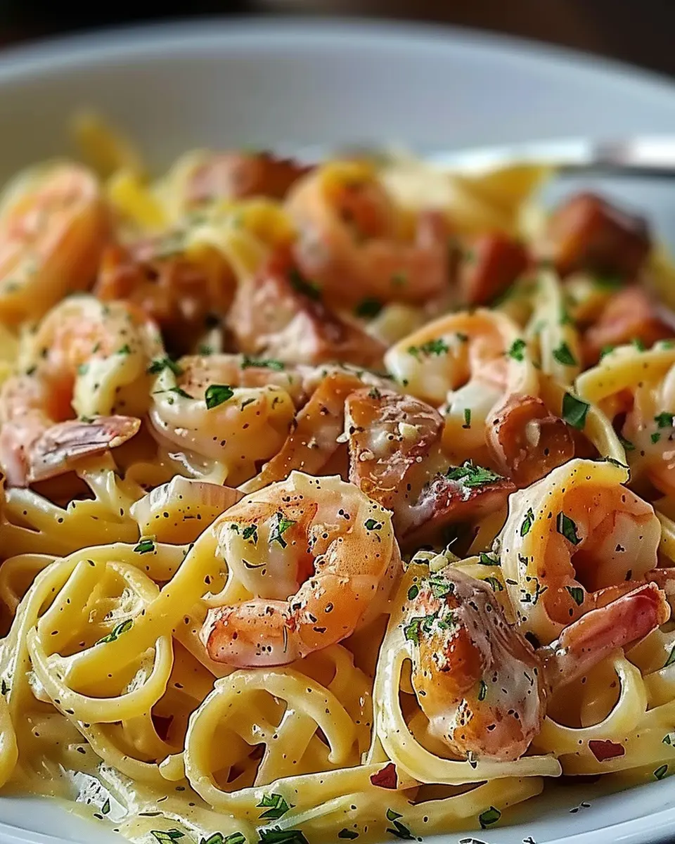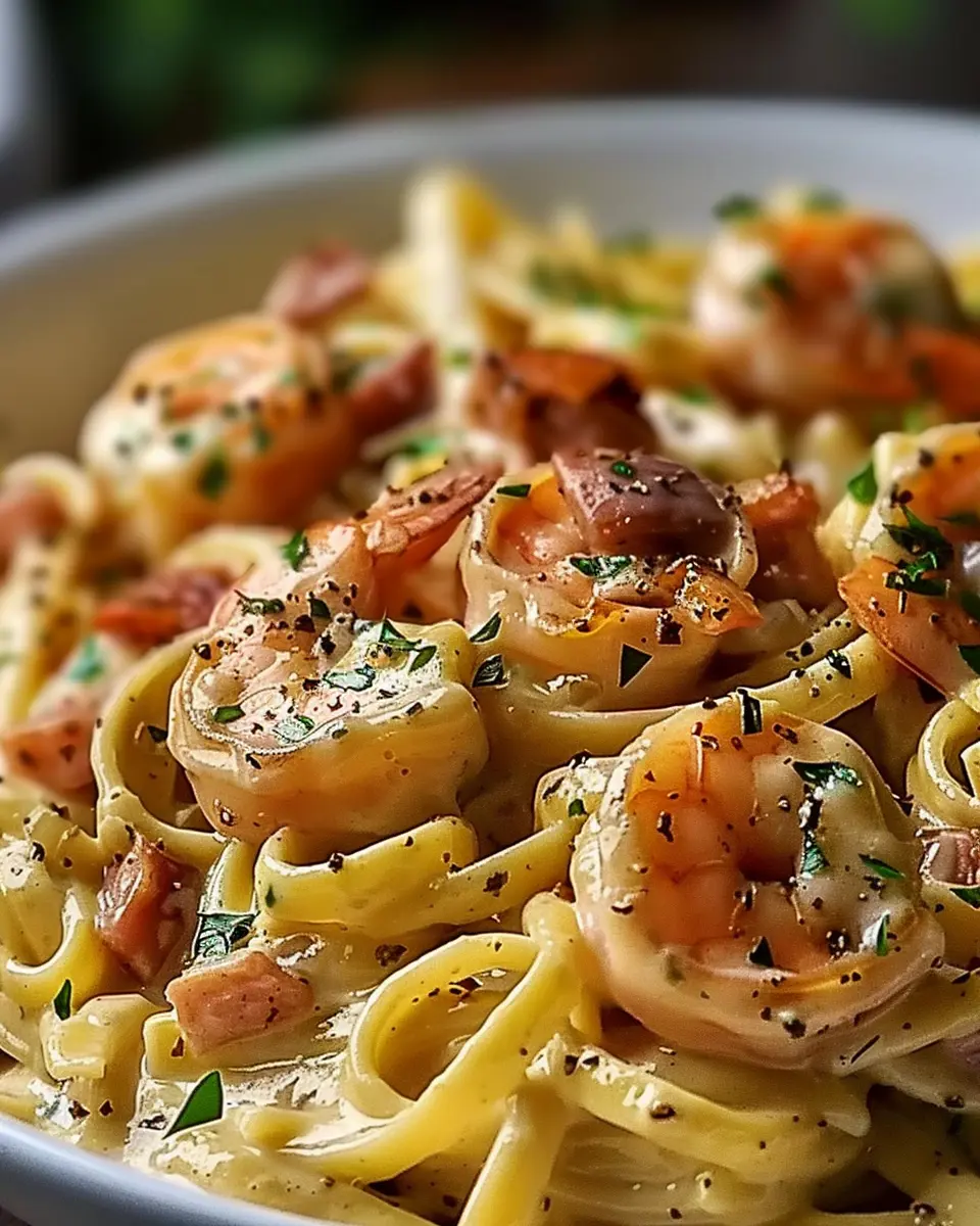 A flavorful and festive pasta dish inspired by Pappadeaux’s Mardi Gras celebration, combining savory turkey bacon and chicken ham.
