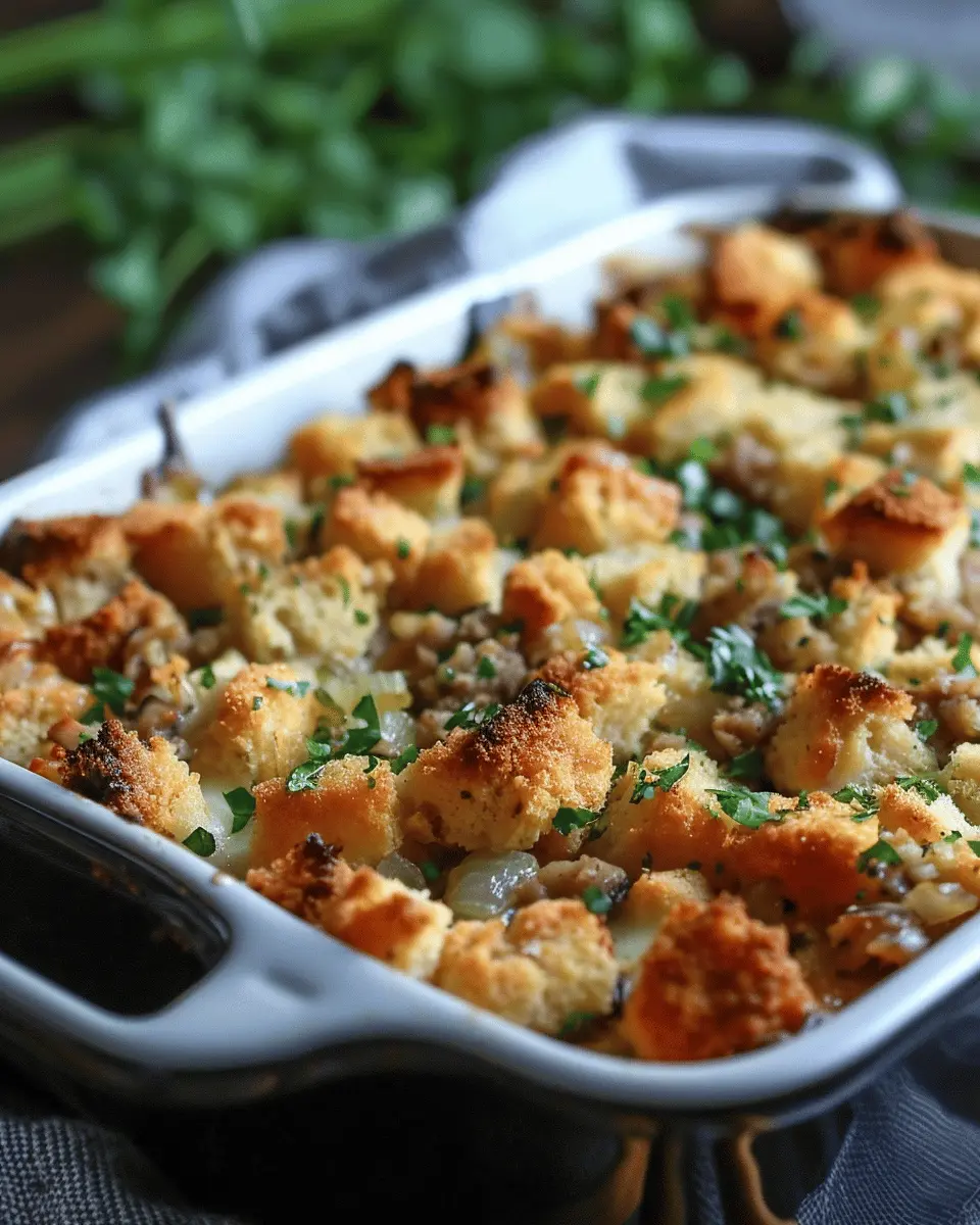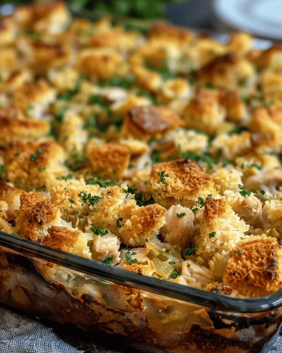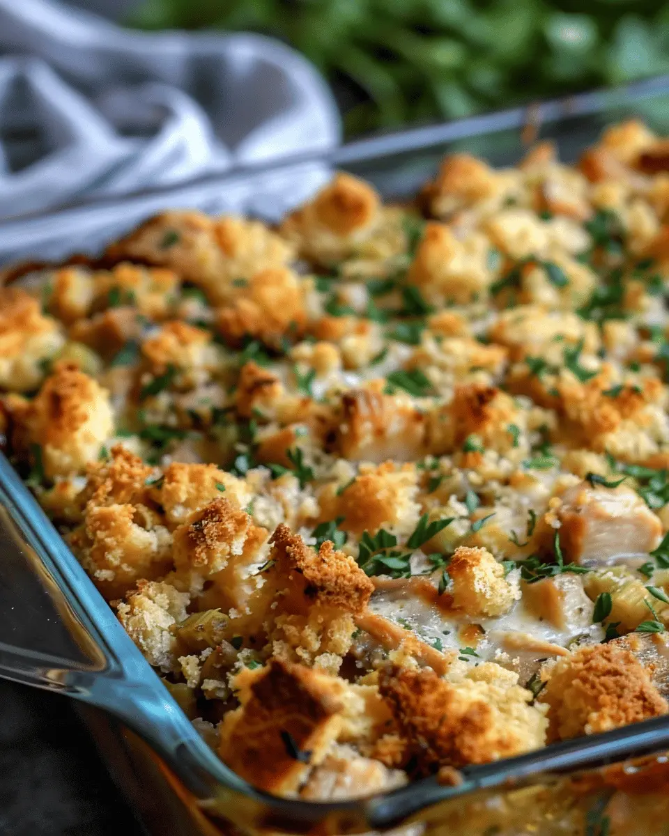 Imagine crisp turkey bacon adding a smoky twist to the comforting layers of your casserole. Simply swap out the regular chicken for shredded rotisserie chicken, and layer in some sautéed turkey bacon before pouring in the stuffing mixture. For an extra cheesy surprise, add shredded cheddar or gouda on top before baking. This not only amplifies the flavor but also creates a delightful golden crust.