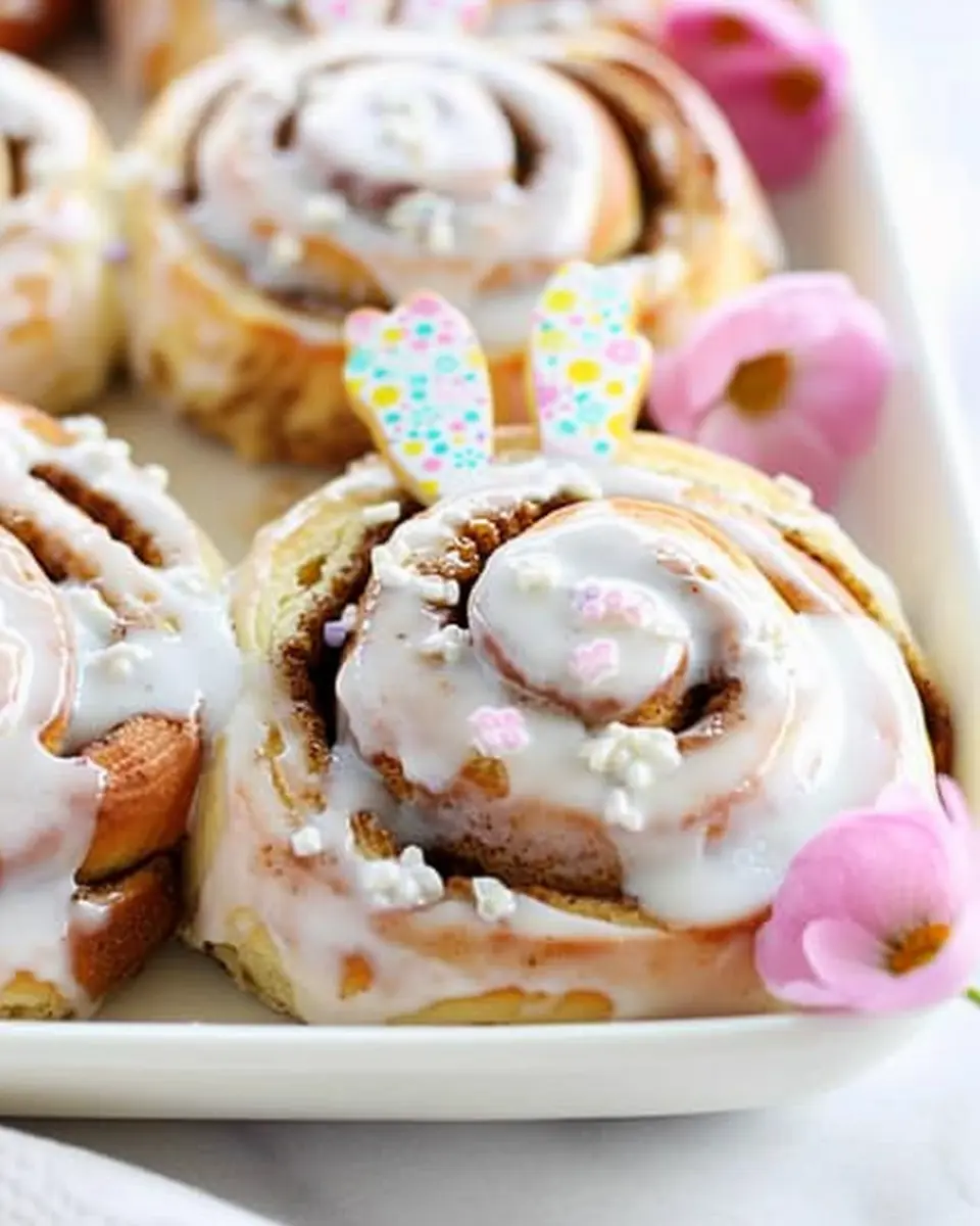 Presentation can make all the difference, especially on a festive occasion like Easter. To showcase your Easter Bunny Cinnamon Rolls, arrange them on a large, colorful platter. Garnish with edible flowers or sprigs of fresh mint for an aesthetically pleasing touch.