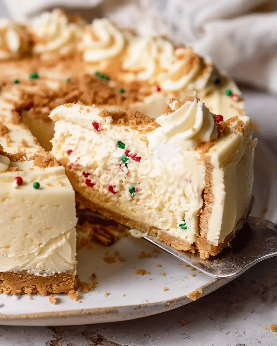 Indulge in the rich and creamy flavor of this Sugar Cookie Cheesecake, perfect for any dessert lover.