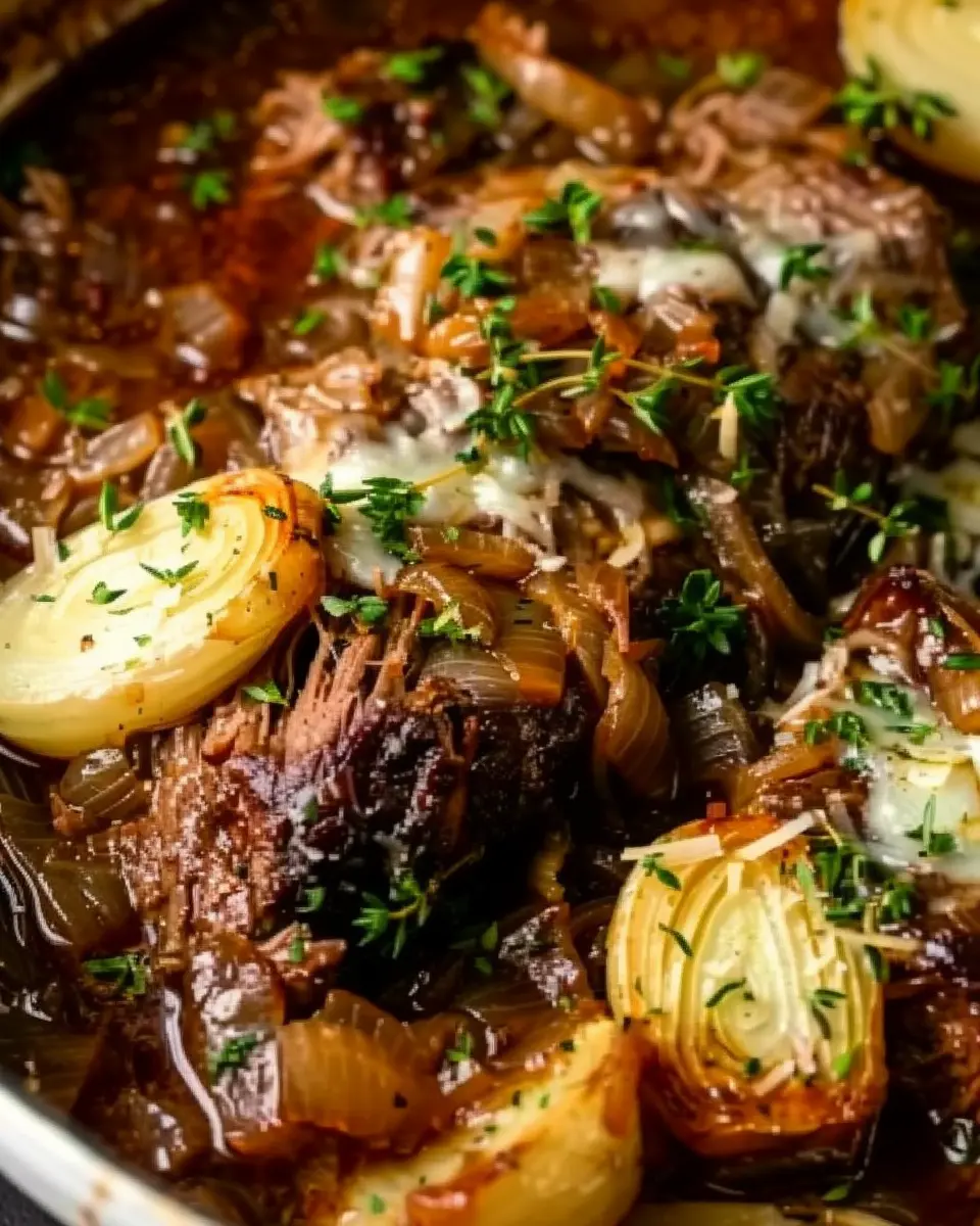 A delicious and hearty dish that elevates the traditional pot roast with rich flavors of French onion soup.