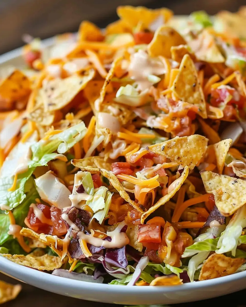 • Add Fritos Last: Fold in those crunchy Fritos just before serving. This will help them maintain their signature crispy texture rather than turning soft in the heat.