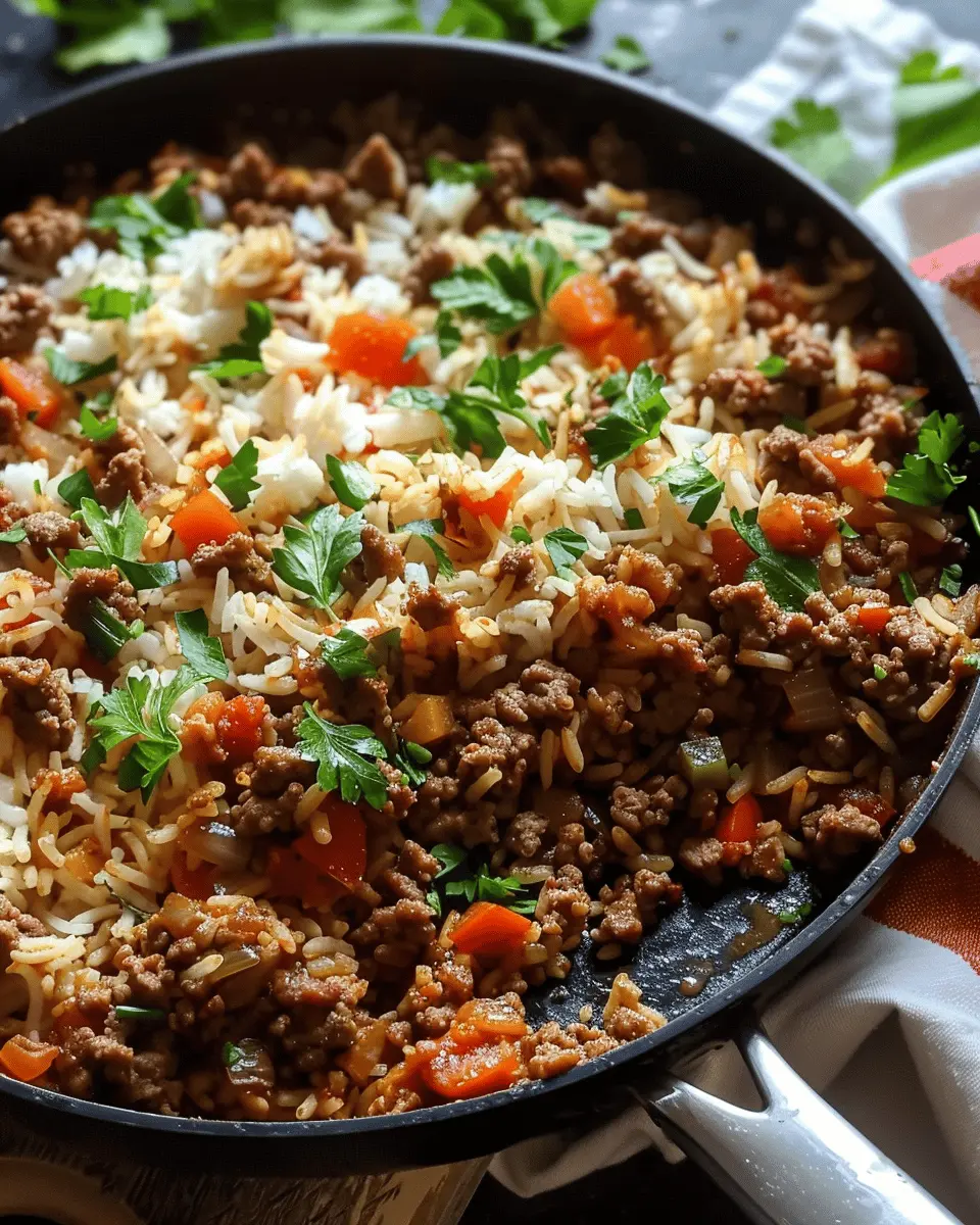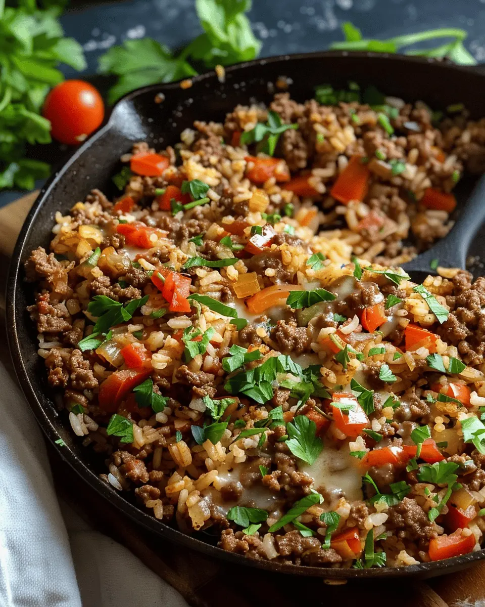 This dish is the epitome of convenience without sacrificing flavor or nutrition. Imagine a one-pan wonder that combines juicy ground beef, fluffy rice, and a medley of colorful vegetables, all harmoniously simmering together. Not only does this meal come together quickly, but it also allows you to utilize pantry staples while easily customizing the flavors to suit your preferences.