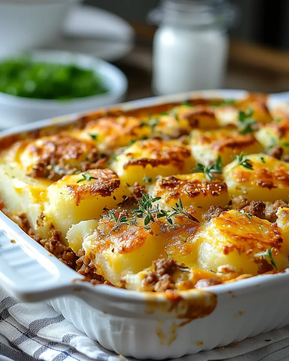 Versatility: One of the best parts of Hamburger Potato Casserole is its adaptability. You can swap in turkey bacon for a lighter option, or use chicken ham to keep the flavors elevated but still comforting. Want to make it vegetarian? Just substitute the beef with lentils or mushrooms!