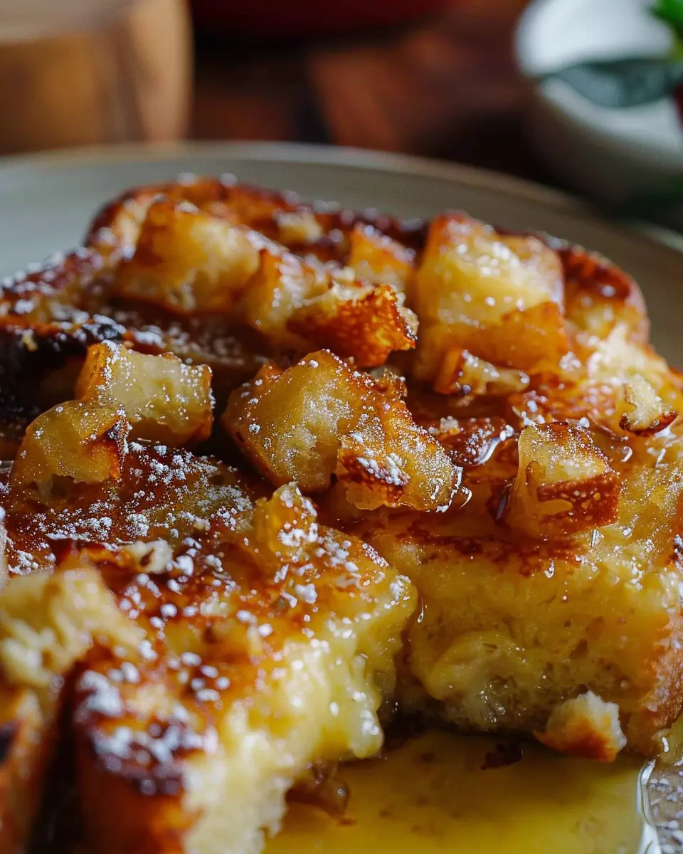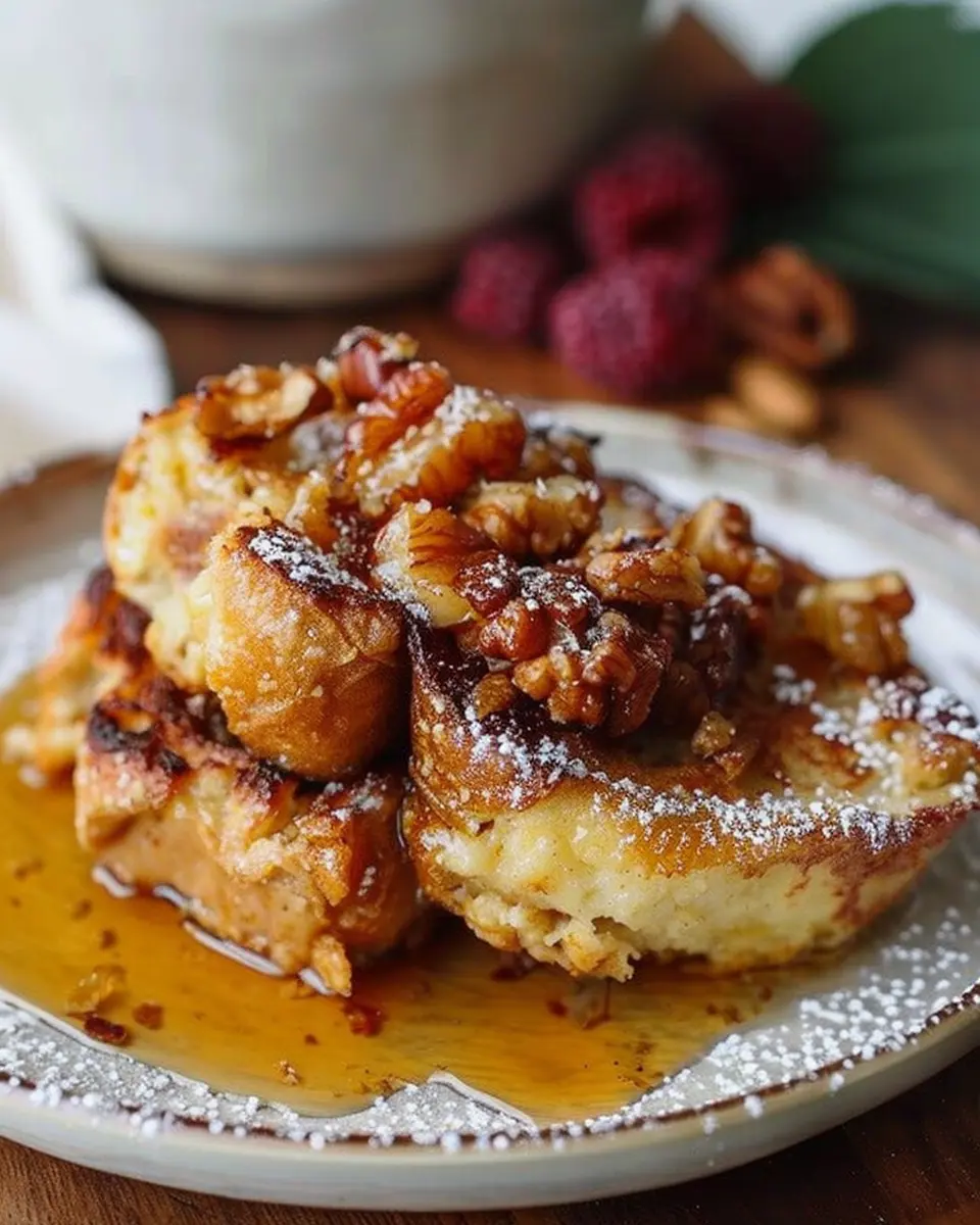 If you’re a fan of nuts, this version features toasted pecans for a delightful crunch. The nuts not only add texture but also complement the rich custard beautifully. Drizzling a little maple syrup on top brings everything together for a truly comforting brunch experience. Plus, pecans are a great source of healthy fats and protein, making this a satisfying option for busy professionals.
