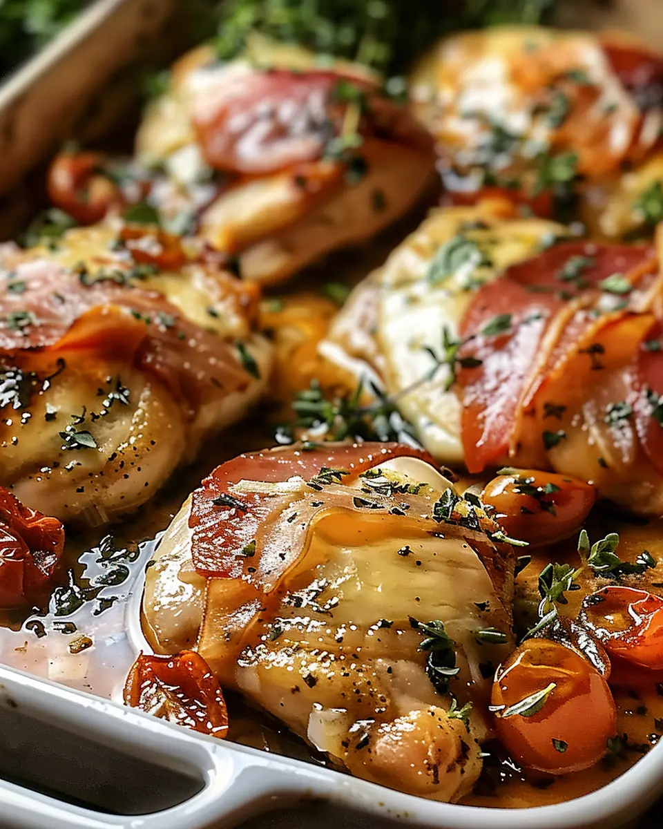 • Add the Wrap: Lay a slice of chicken ham on each chicken breast, followed by a slice of turkey bacon. Think of this as giving your chicken its own stylish outfit!