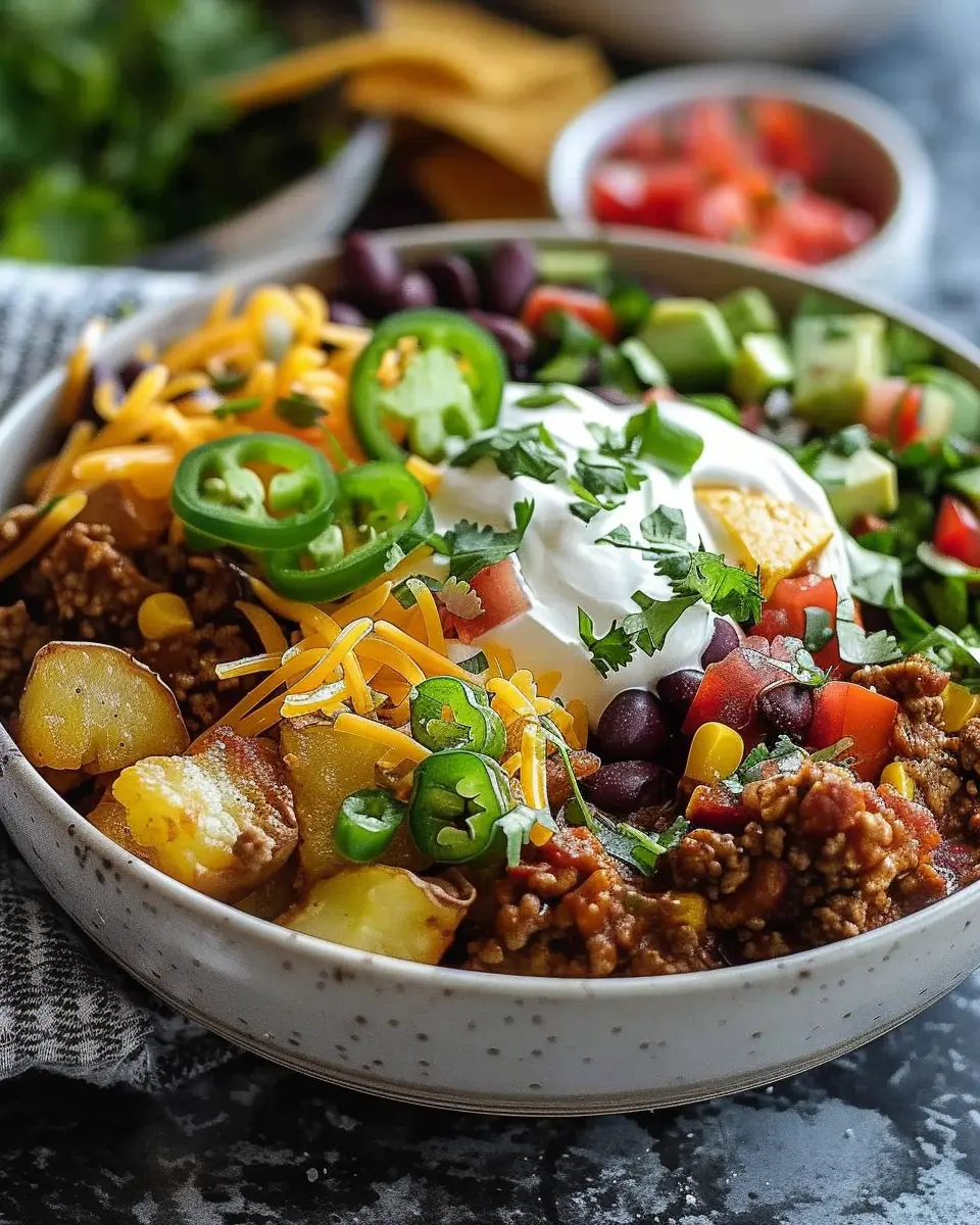 Customizable for Dietary Preferences: Whether you’re vegetarian, gluten-free, or just looking to cut down on meat, the loaded potato taco bowl is incredibly flexible. You can swap in your favorite toppings—think black beans, corn, or a dollop of guacamole—for tailored options that suit your palate.