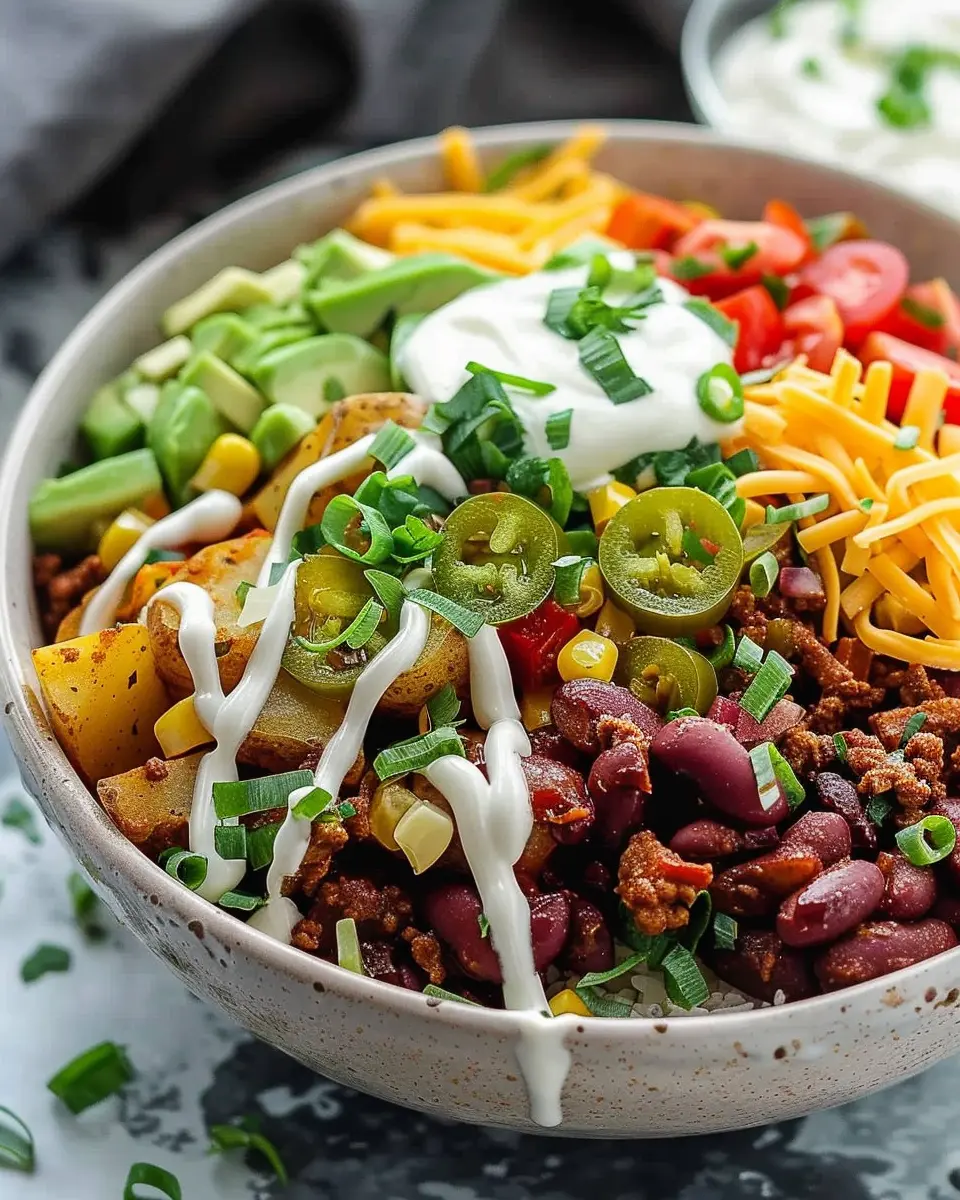 Creating a loaded potato taco bowl is not just about satisfying your hunger; it’s a delightful way to explore flavors and textures that come together effortlessly. Trust me, once you’ve prepared this dish, you’ll want to make it again and again. Let’s dive into the steps to create this comforting, colorful meal!