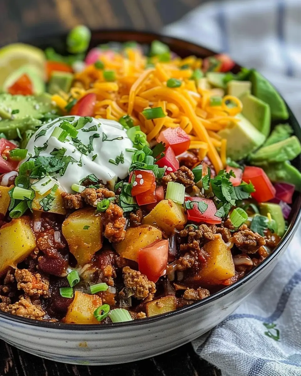Creating a loaded potato taco bowl is a delightful endeavor that combines comfort food with the vibrant flavors of Mexican cuisine. Whether you’re cooking for a cozy night in or hosting friends for a casual get-together, this recipe is sure to impress! Let’s break down the steps to make this scrumptious dish from scratch.