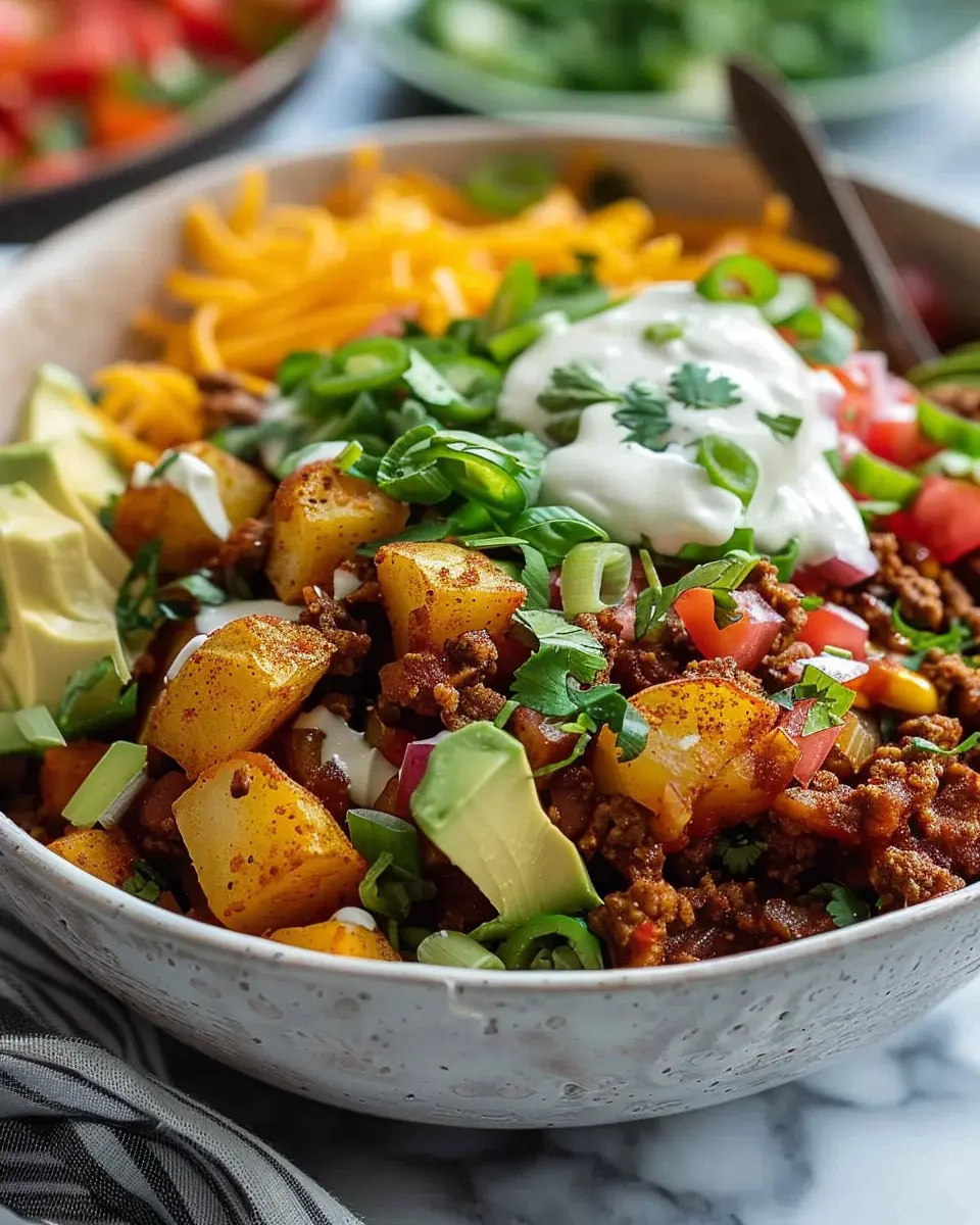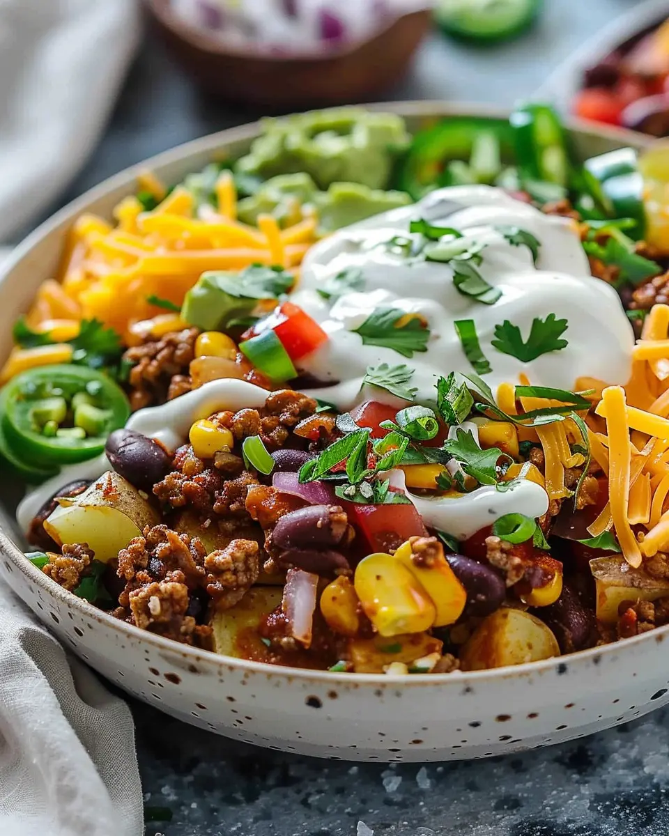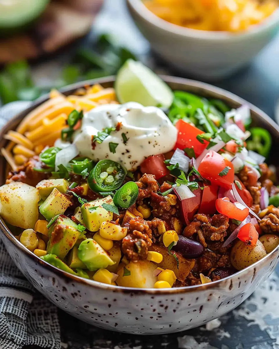 Creating a loaded potato taco bowl is a delightful culinary adventure that satisfies those comfort food cravings while keeping things wholesome. The balance of crispy potatoes, seasoned meat, and fresh toppings makes for a colorful and hearty meal. Let’s dive into the step-by-step process to prepare this flavor-packed dish!