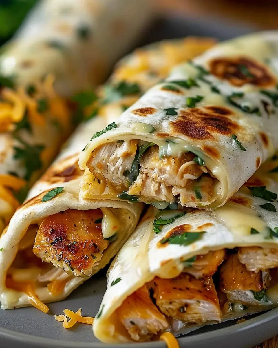 Now comes the fun part—assembling your wraps! Lay a warm tortilla flat on a clean surface, and spoon the chicken and cheese mixture down the center. Be generous; this is what makes each bite delightful. Fold the sides of the tortilla over the filling, then roll it up tightly from the bottom to the top, ensuring everything is enclosed.