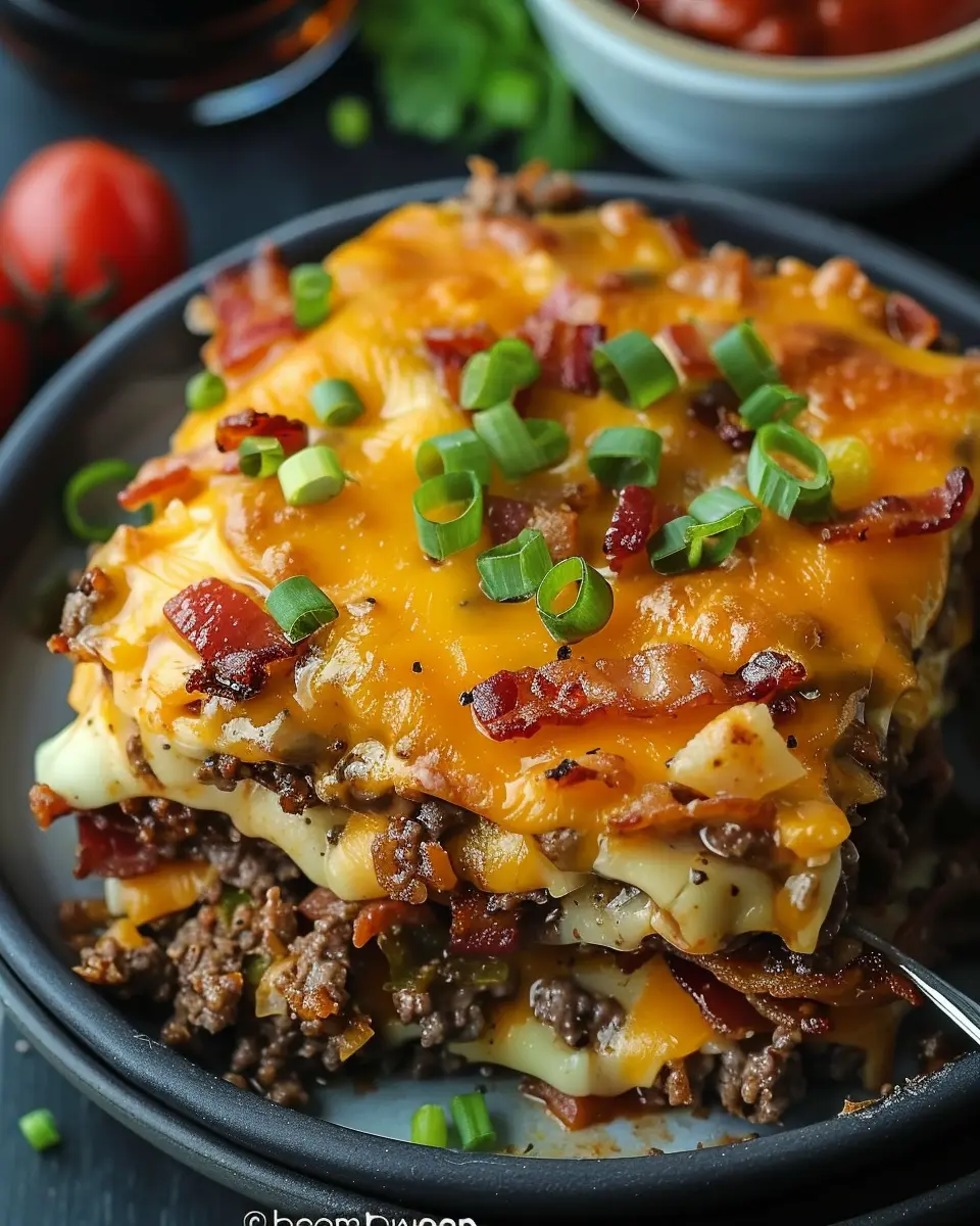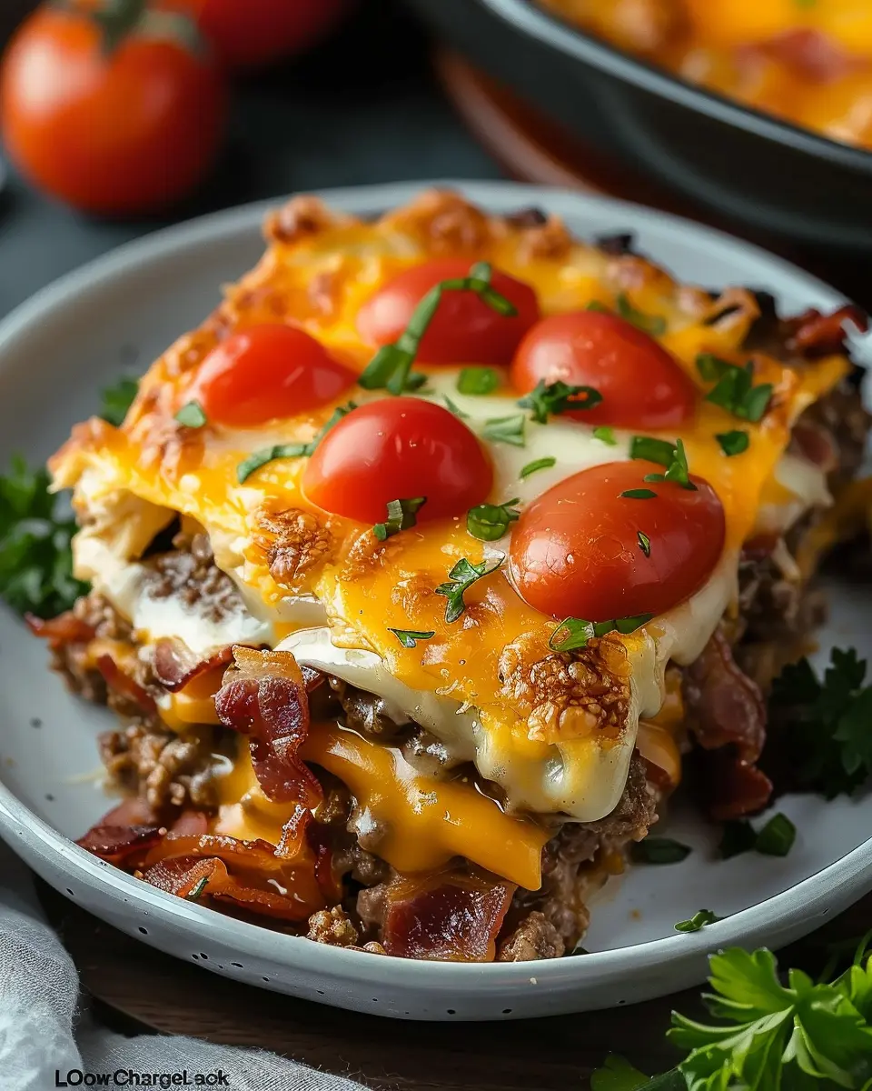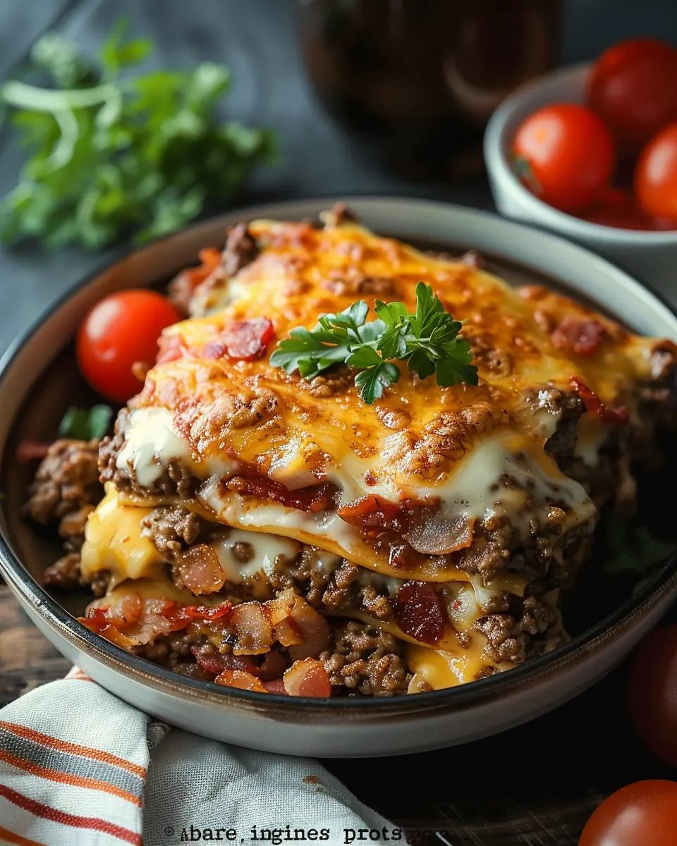 A delicious and easy-to-make casserole that combines the flavors of a classic bacon cheeseburger with low-carb ingredients.