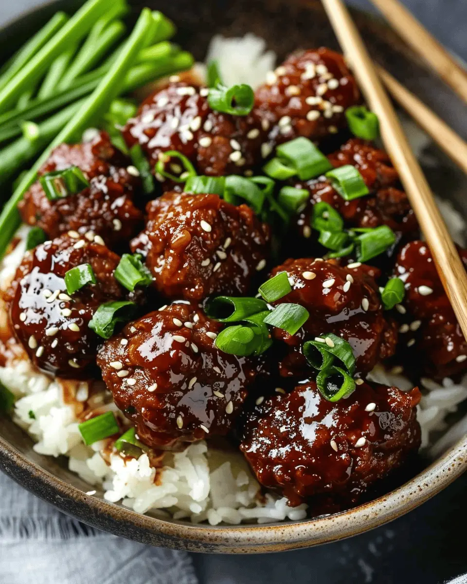 In summary, Mongolian meatballs are a delightful blend of flavor and simplicity. These delicious bites come together quickly, making them perfect for busy weeknight dinners or casual gatherings with friends. The sweet and savory glaze pairs beautifully with the tender meat, which can easily be customized to suit different dietary preferences.