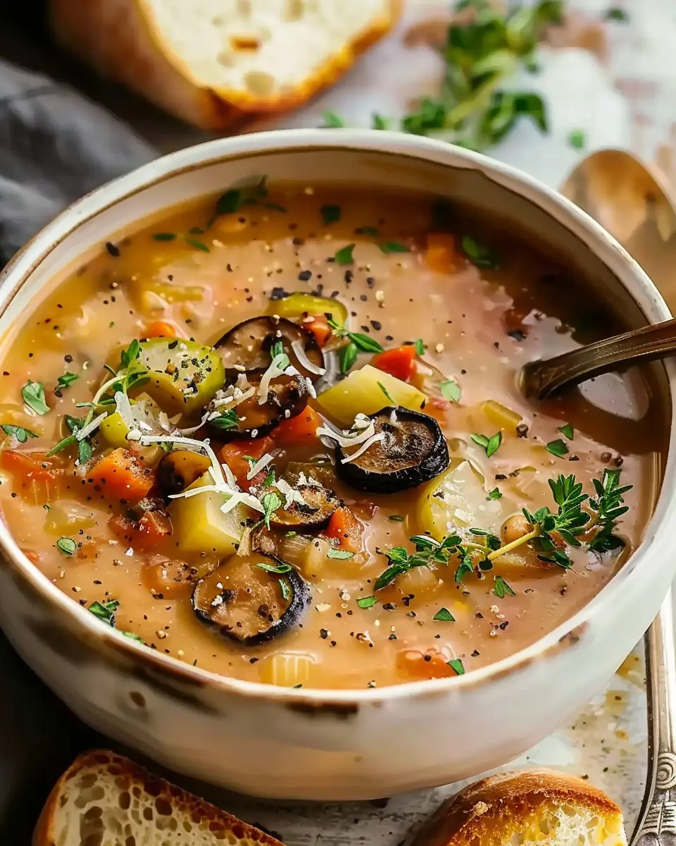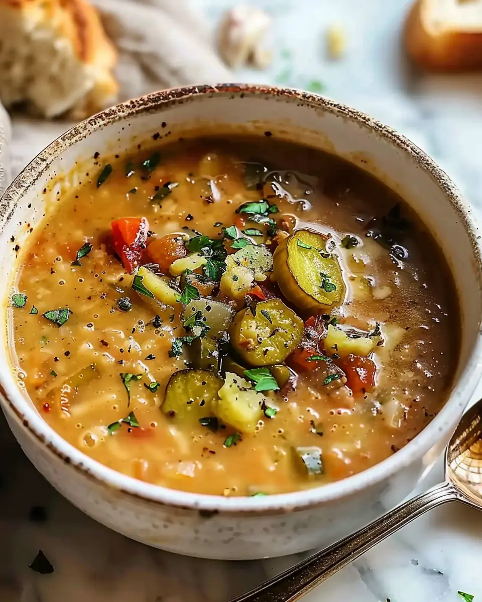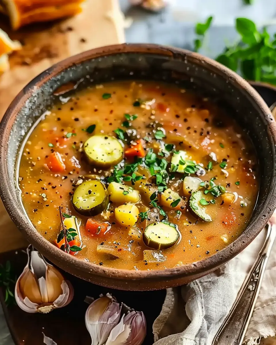A deliciously healthy ratatouille soup that combines fresh vegetables in a comforting broth.