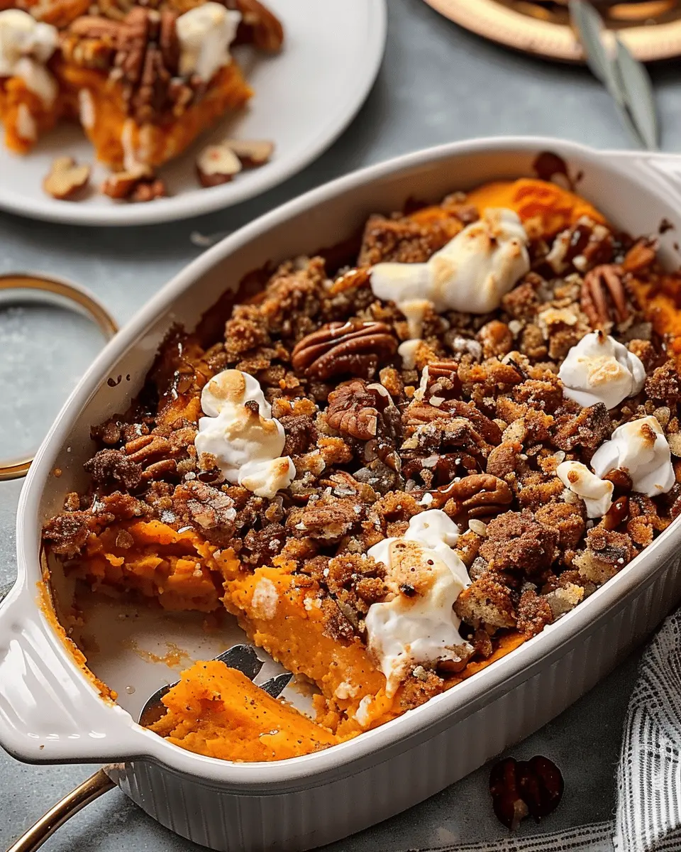 Want to lighten up your Southern Maple Sweet Potato Casserole while still enjoying its comforting flavors? Consider skipping the marshmallows and instead opt for a crunchy oat topping. Simply mix rolled oats with a bit of coconut oil and cinnamon for a heartier finish. Instead of brown sugar, try using a natural sweetener like coconut sugar or even pure maple syrup to retain that rich flavor with fewer calories.