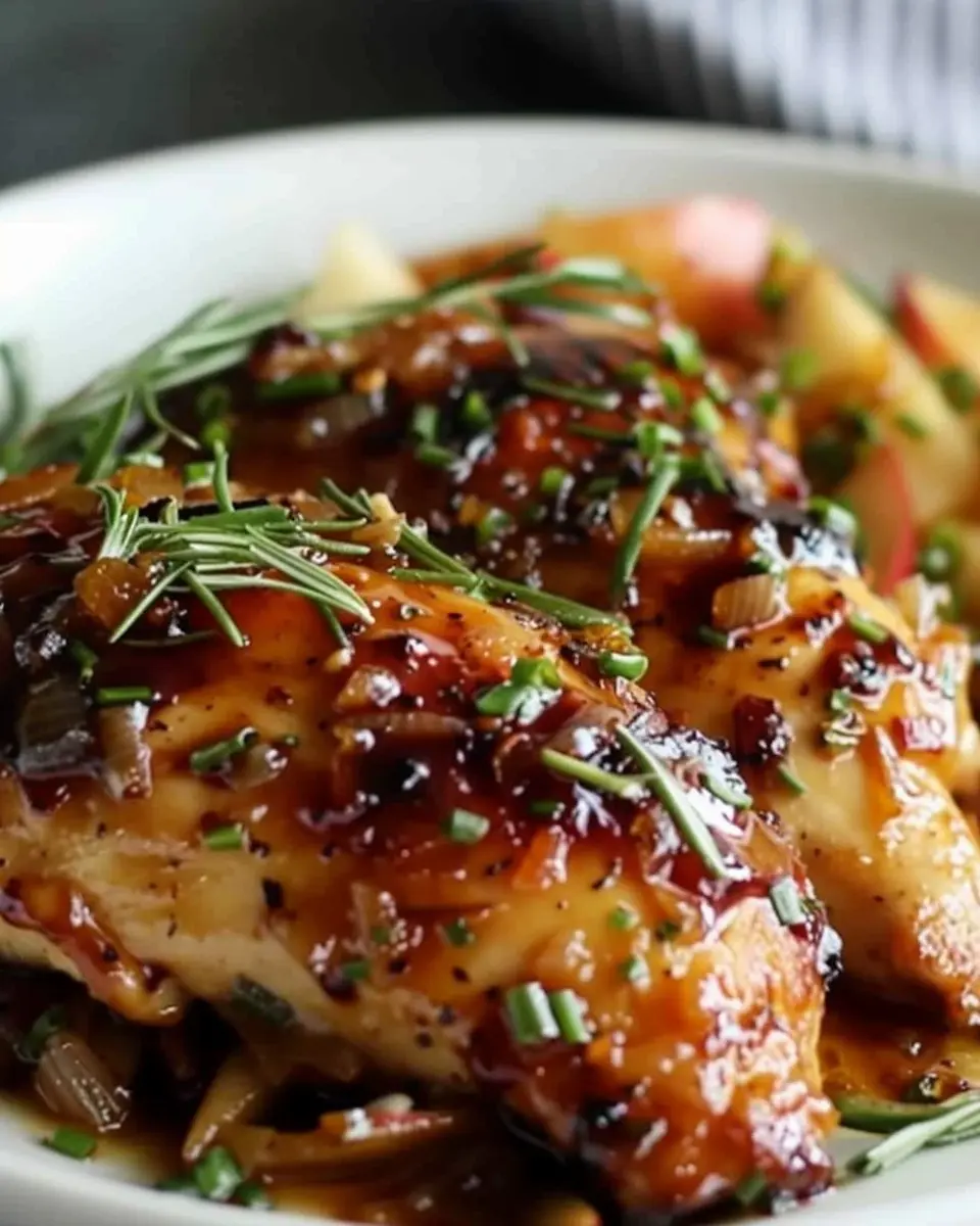 A warm and comforting dish featuring juicy chicken coated in a sticky apple cider glaze.