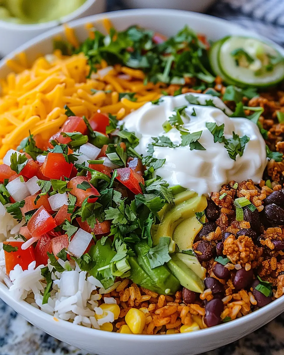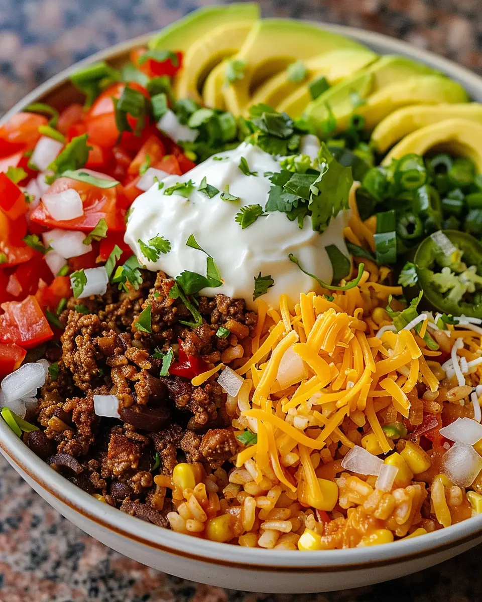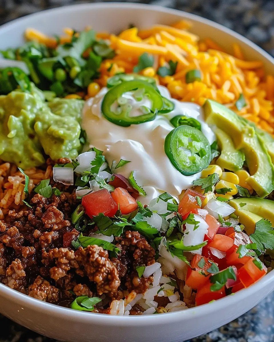 Feel free to customize your bowl with your favorite toppings; beans, cilantro, or avocado can spice it up. Enjoy your culinary journey into the world of taco flavors!