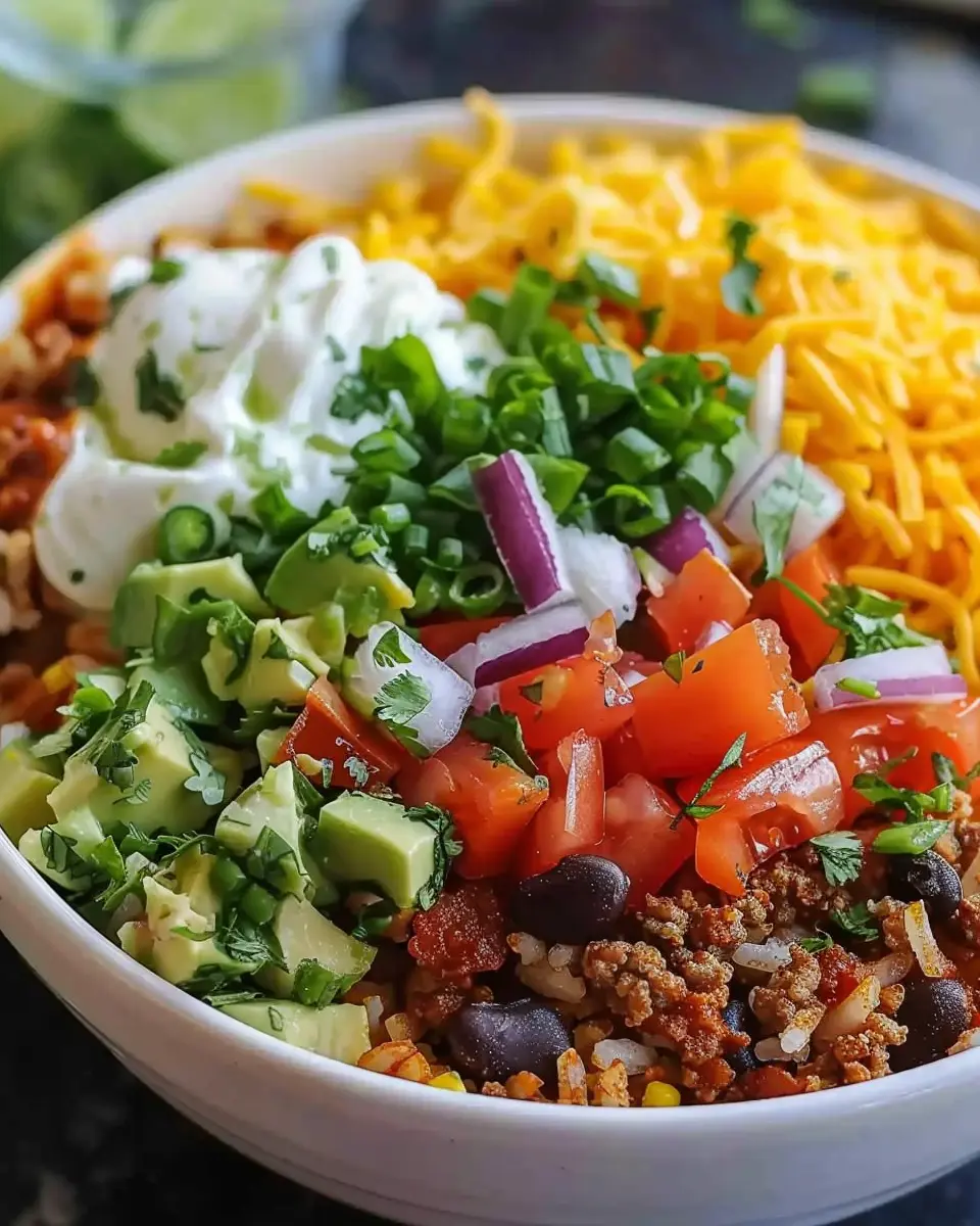 Moreover, the taco rice bowl is incredibly versatile. Depending on your mood or dietary preferences, you can easily mix and match ingredients. Want something extra spicy? Toss in some jalapeños! Prefer a vegetarian option? Swap the beef for black beans. The world is your oyster—or, in this case, your taco bowl!