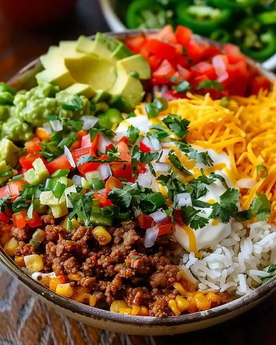 Finally, let’s not forget the joy of customized toppings. Whether it’s creamy avocado, crunchy tortilla chips, delicious salsa, or a sprinkle of cheese, you can create a taco rice bowl that is uniquely yours. So grab your favorite ingredients, roll up your sleeves, and let’s get cooking! This homemade meal is more than just food—it’s an experience to savor.