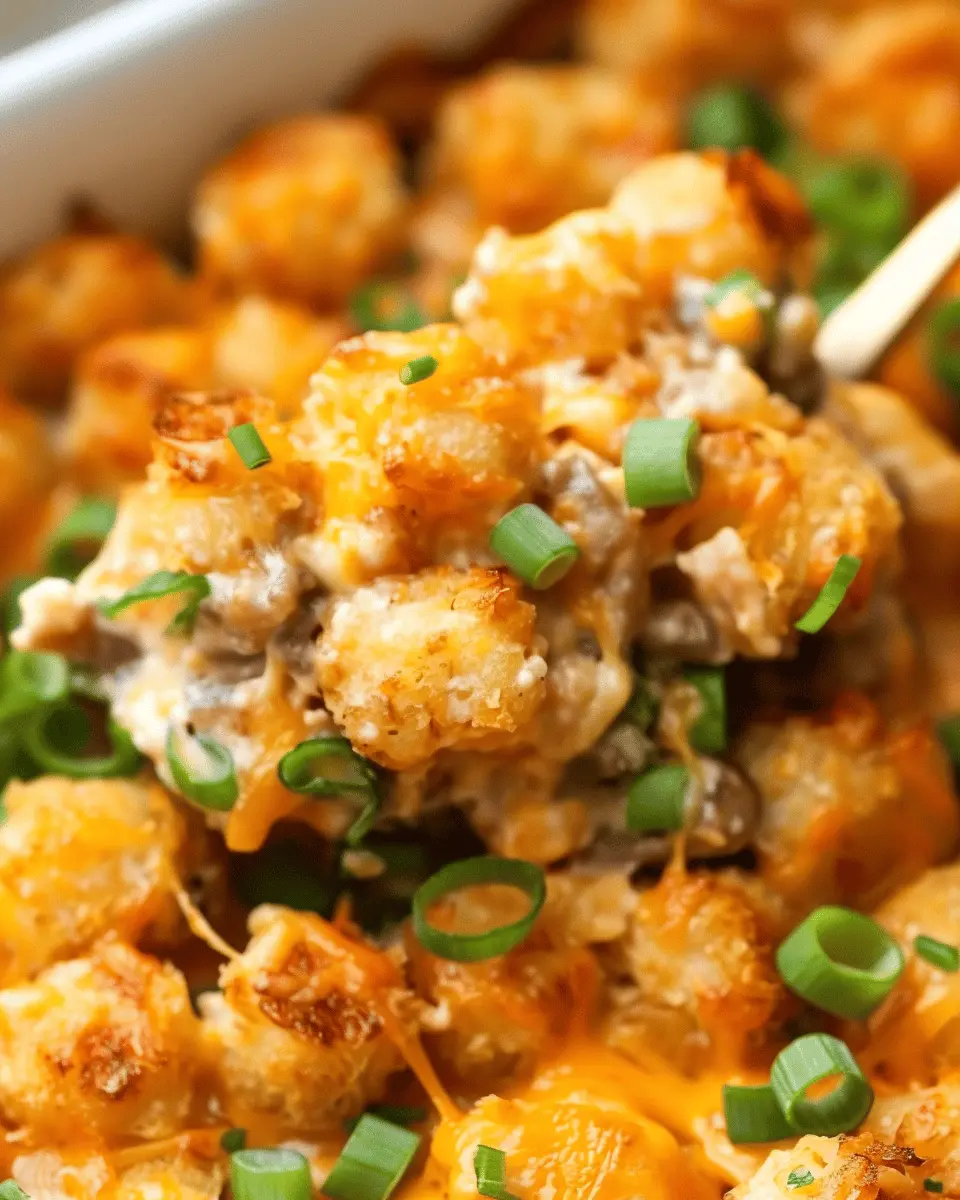 At its core, the tater tot casserole combines some of life’s simplest pleasures: crispy tater tots, savory meats like Turkey Bacon or Chicken Ham, and cheesy goodness. This dish is not just a meal; it’s a nostalgic trip down memory lane for many.