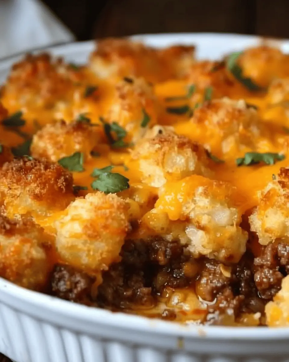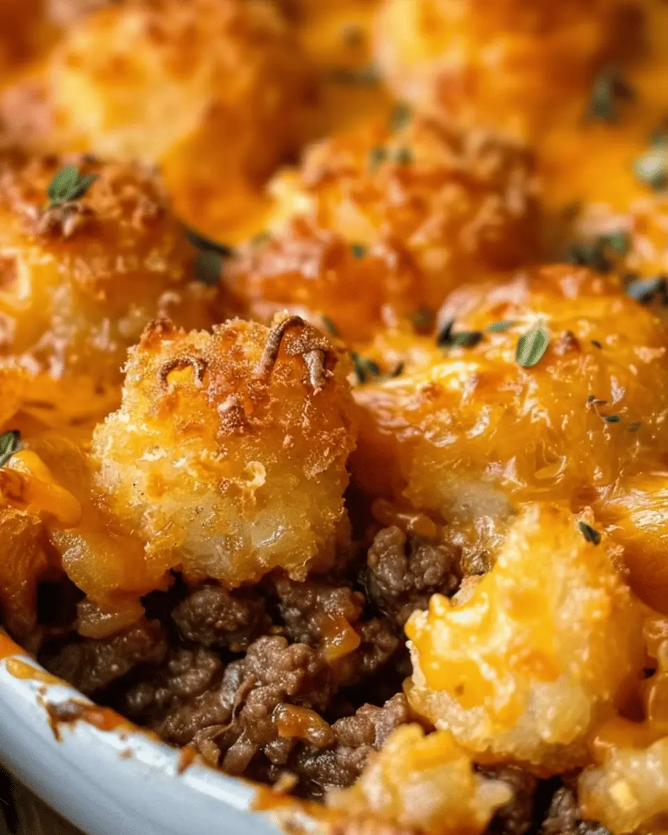 Enjoy this hearty and delicious Tater Tot Casserole with Ground Beef, perfect for family dinners or potlucks.